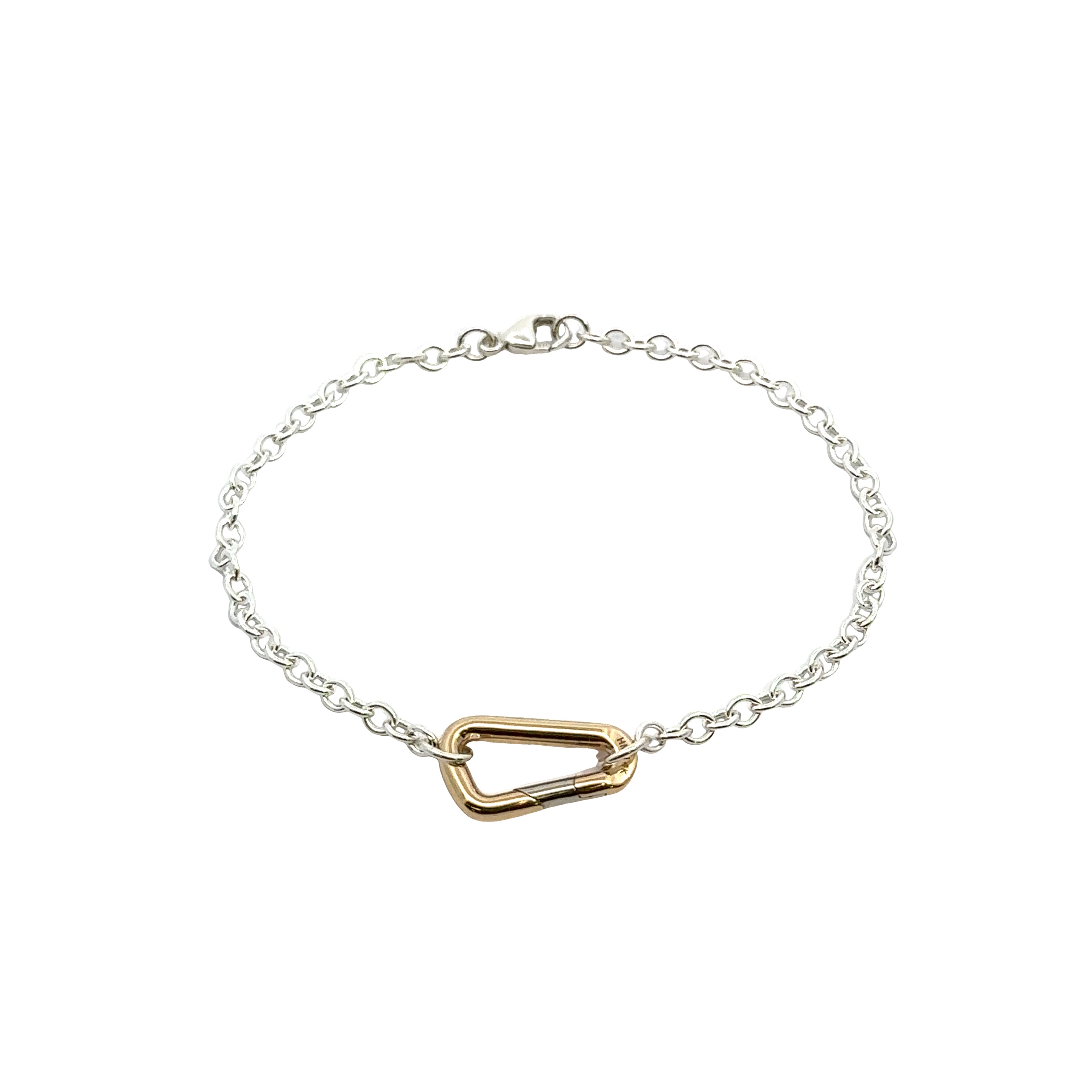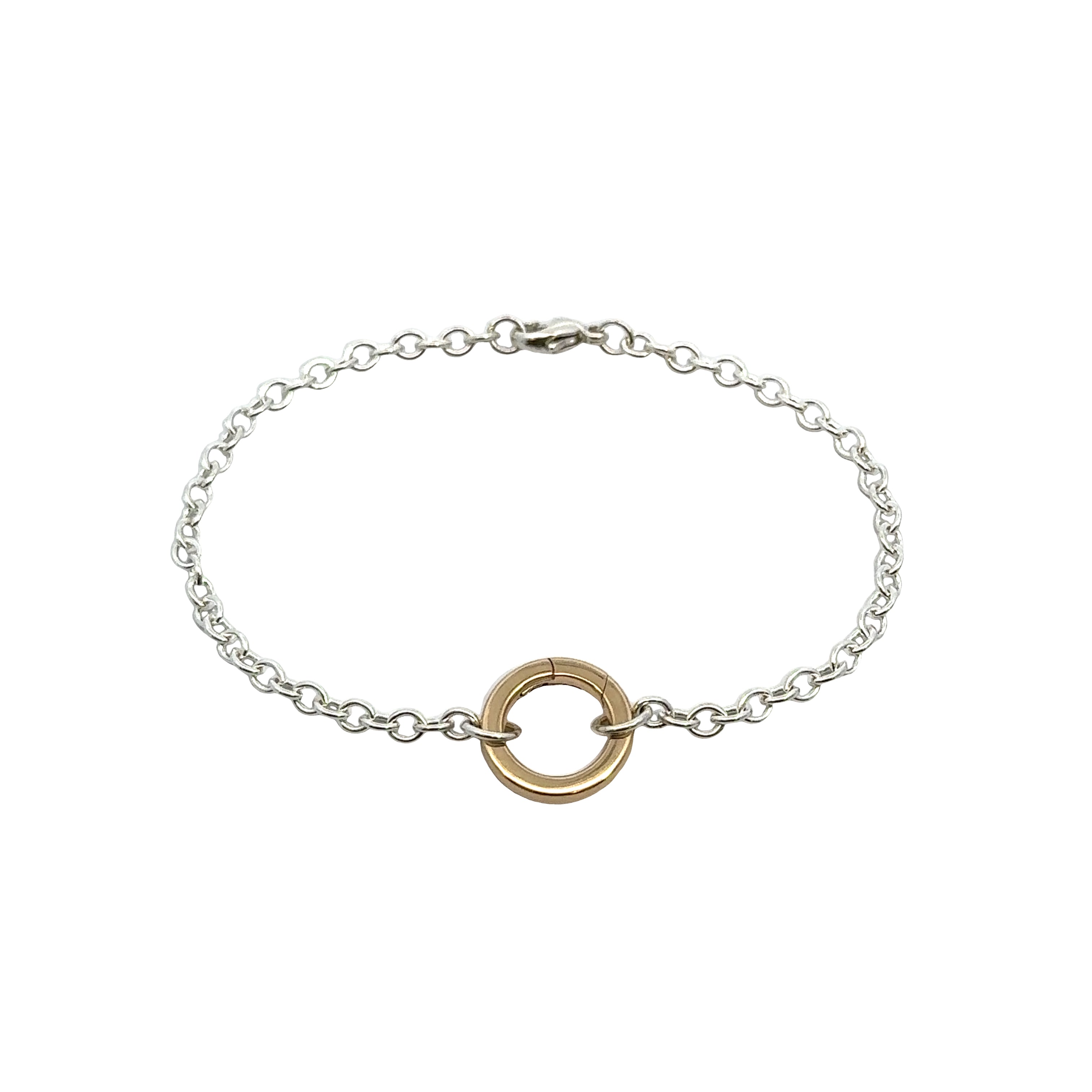Experience our 3mm silver chain hinge bracelet. Handcrafted from beautiful sterling silver, this chain will elevate any outfit. Our unique design lets you hang your favorite charms from one of our beautiful hinges. Start building your unique masterpiece today.