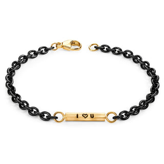 3.8mm Stainless Steel Black Chain I Heart U Round Bar Bracelet