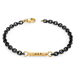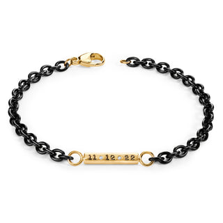 3.8mm Stainless Steel Black Chain Initials & Date Round Bar Bracelet
