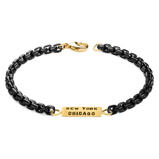 4mm Stainless Steel Black Chain Cities Square Bar Bracelet