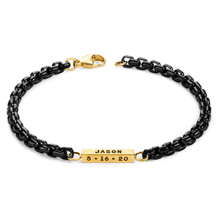 4mm Stainless Steel Black Chain Names & Dates Square Bar Bracelet