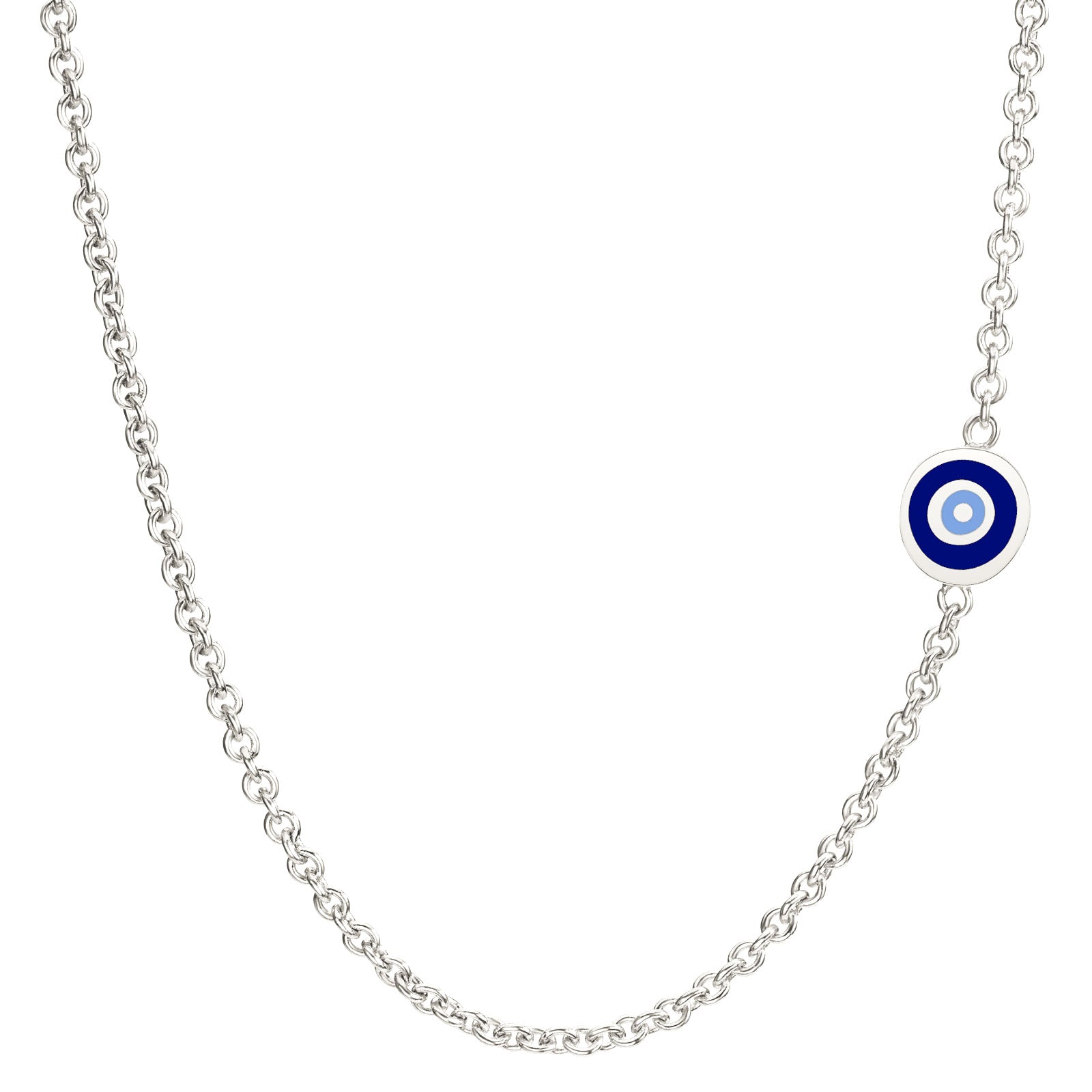 • Elegant Vitreous Enamel Evil Eye: At its core, a beautifully crafted silver evil eye adorned with vitreous enamel stands as a symbol of playful fun, adding a vibrant pop of color and a unique texture that sets this necklace apart.