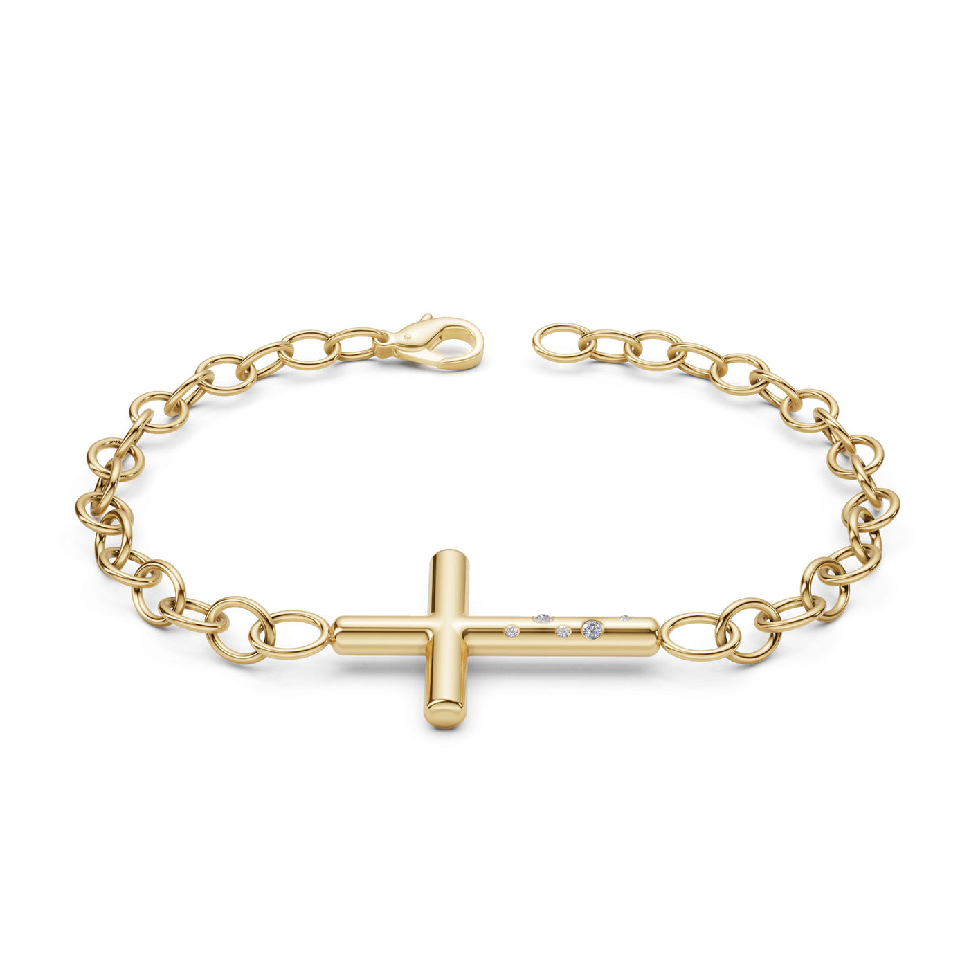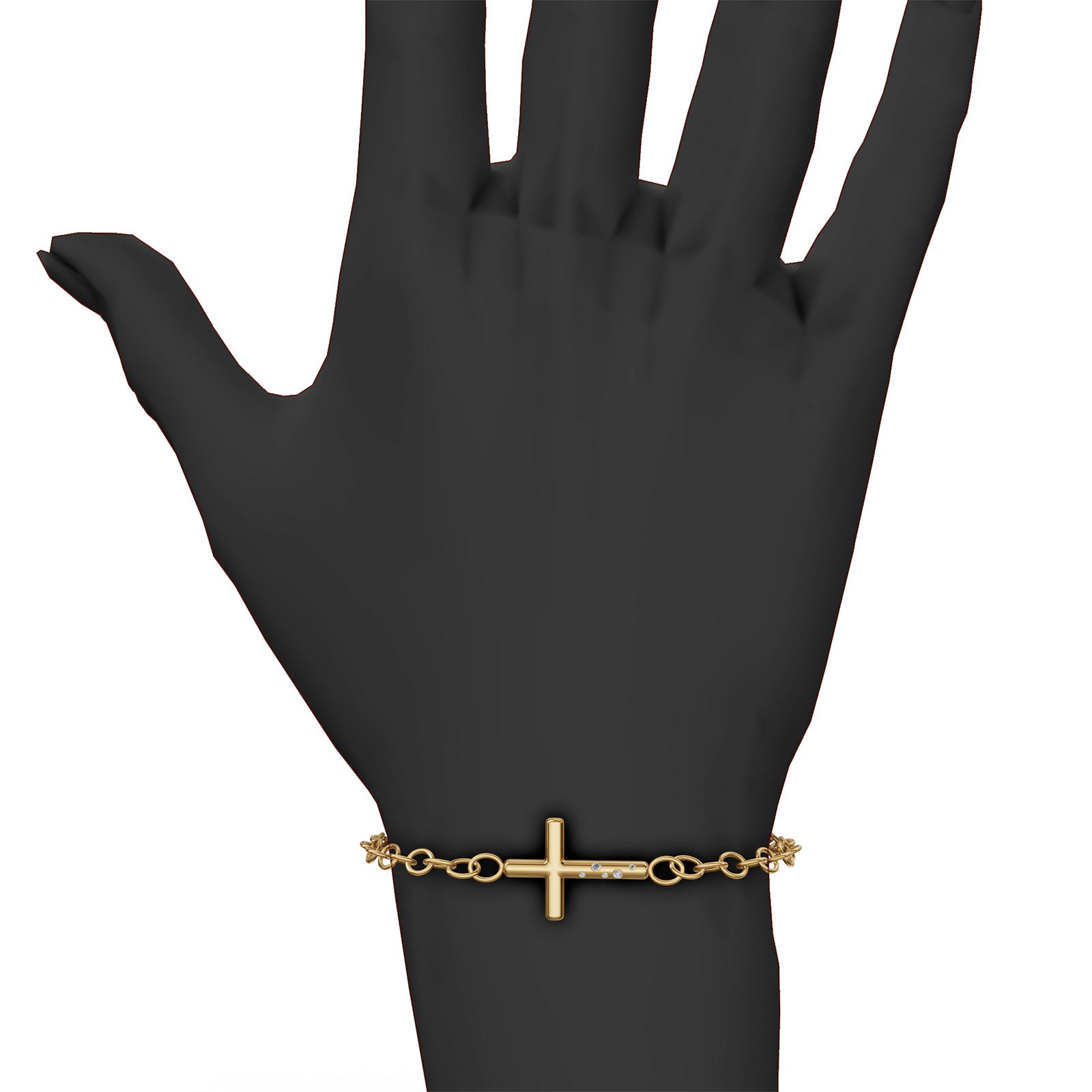The 4.8mm Gold Diamond Cross Bracelet is a beautiful and dainty way to express your faith. Crafted from 14k yellow gold and hand set with white diamonds, this elegant bracelet adds a touch of sparkle to any look. Show off your faith and your style with this unique piece of jewelry.