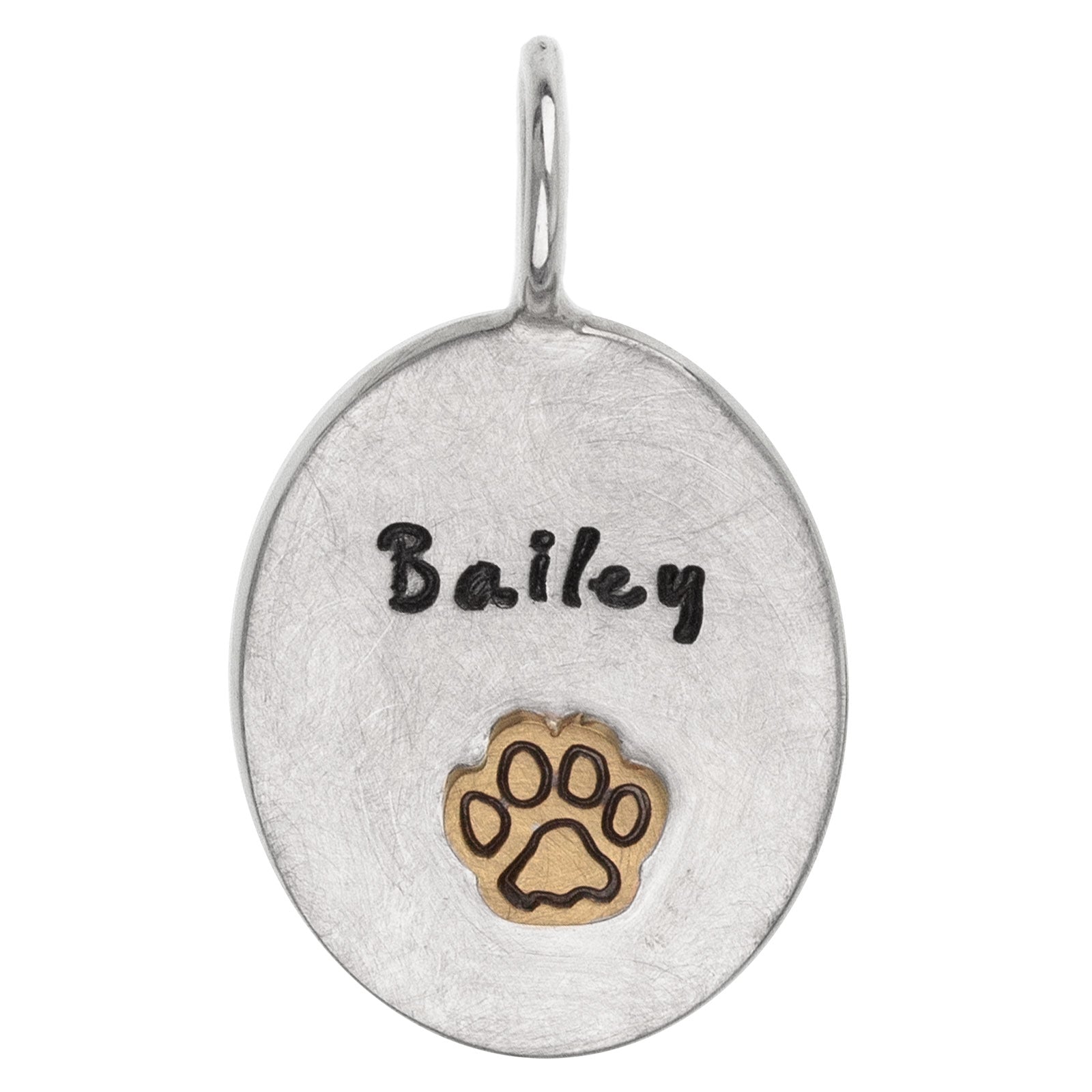 Do you want to capture your pet's unique spirit with a custom-made keepsake? This oval charm is the perfect way to do it. Handcrafted using sterling silver and solid 14k gold, each charm is personalized with your pet's name, making it as unique as they are. Show your love and create a truly special piece today.