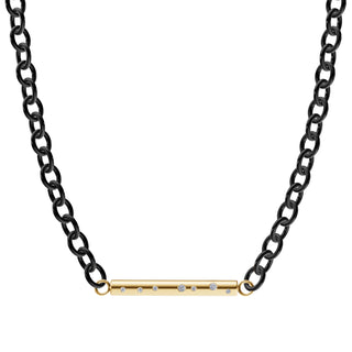 Unveil your elegance with this stunning 16" 3.8mm Stainless Steel Black Bar Chain Bracelet.Hand set white diamonds and 14k yellow gold craftsmanship make for an exquisite and unforgettable piece. Perfect for a special night out, this beautiful chocker will have you feeling glamorous and confidently radiant!