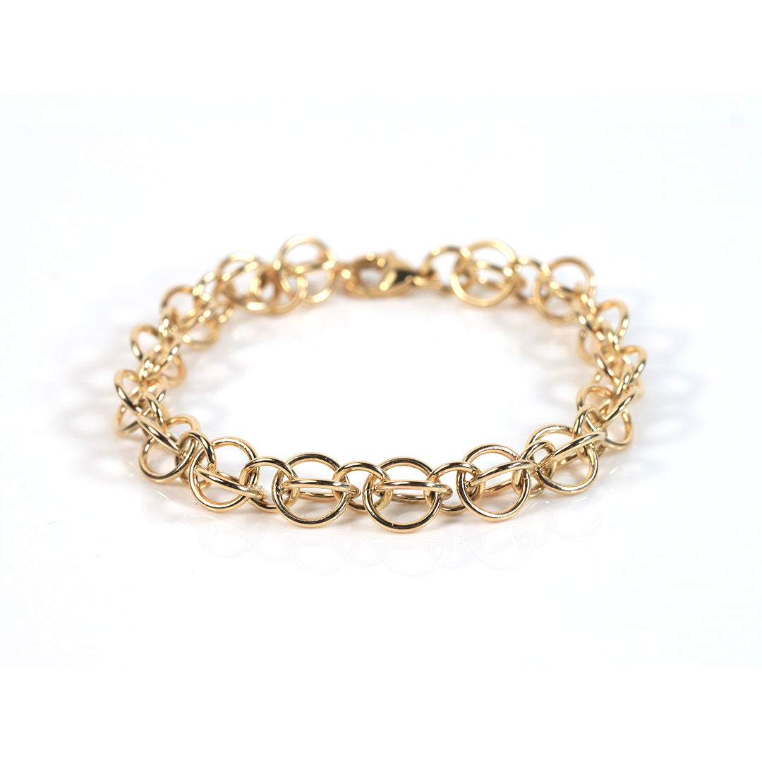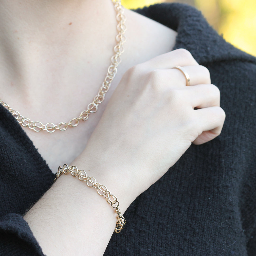 14k yellow gold 6.5" handmade rain chain bracelet available in 14k. Should you need a custom length, please contact us.