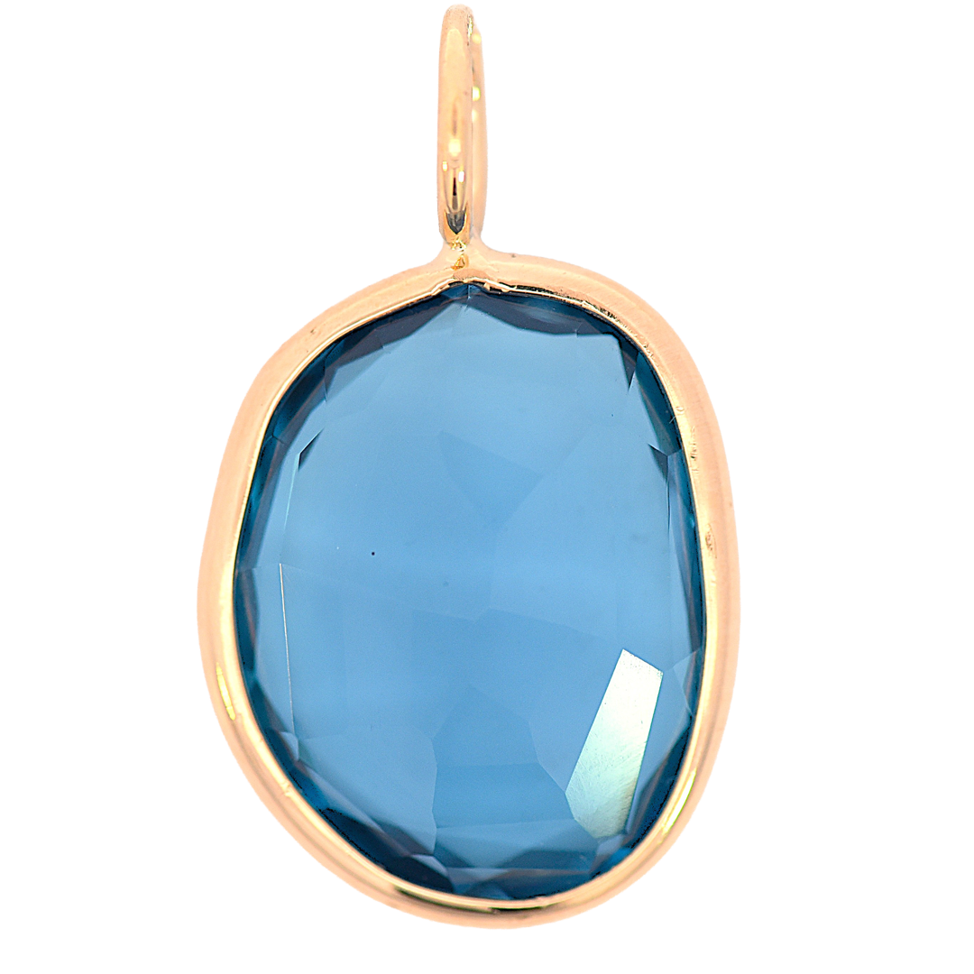 Looking to add tranquility and clarity to your day? this medium London Blue Elizabeth wrapped in 14k yellow gold is the perfect stone for you collection.