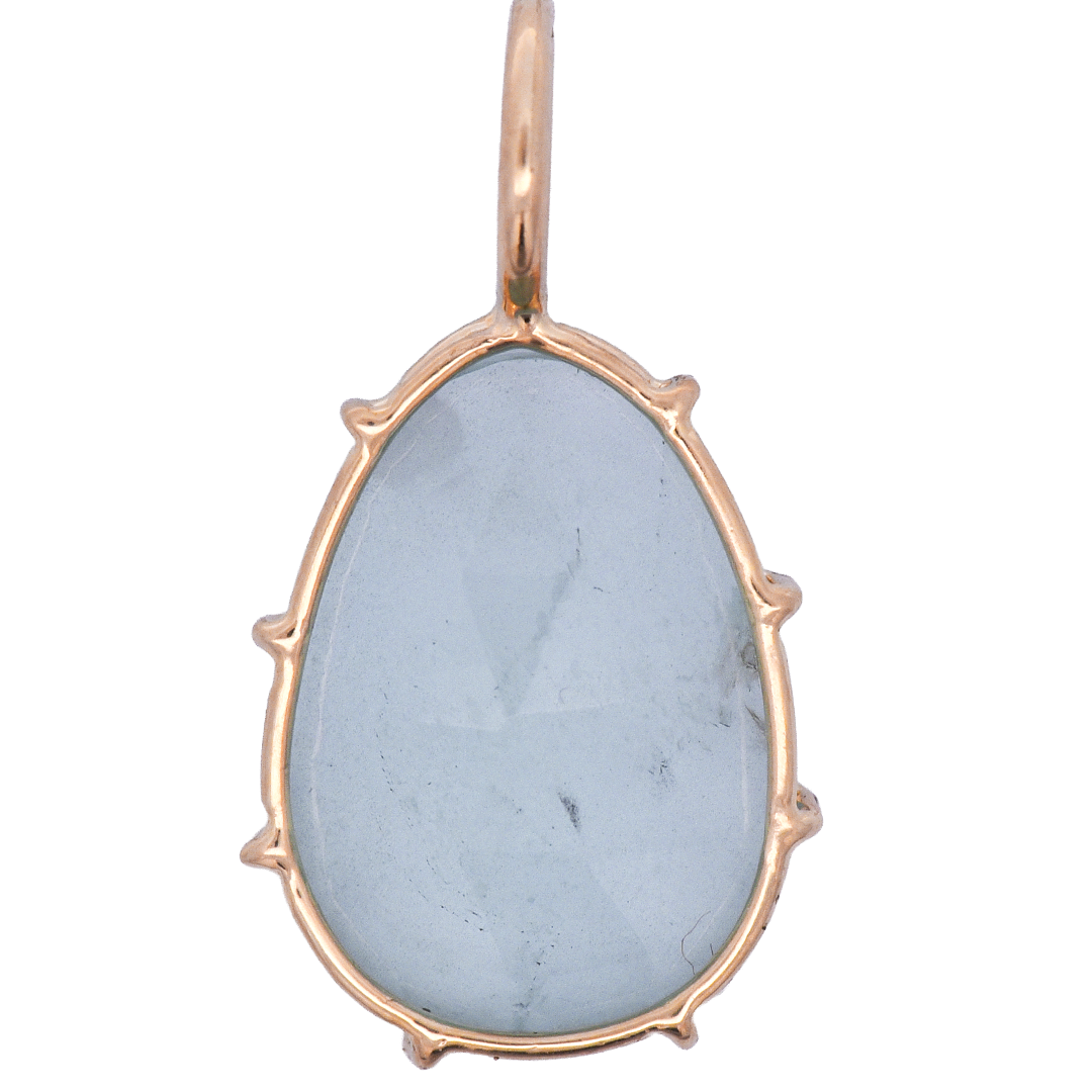 Small aquamarine Harriet Stone wrapped in 14K Yellow Gold wire. Aquamarine is known to bring calm, clarity, and courage to the person wearing it.
