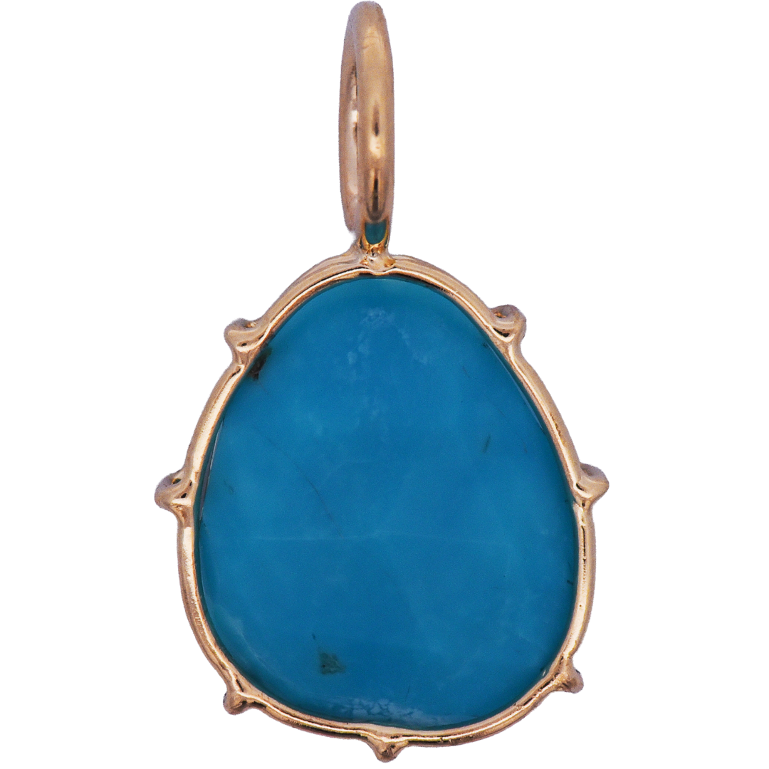 Add some positive energy to your collection with this small turquoise Harriet stone set in a hand built cage of solid 14k yellow gold.