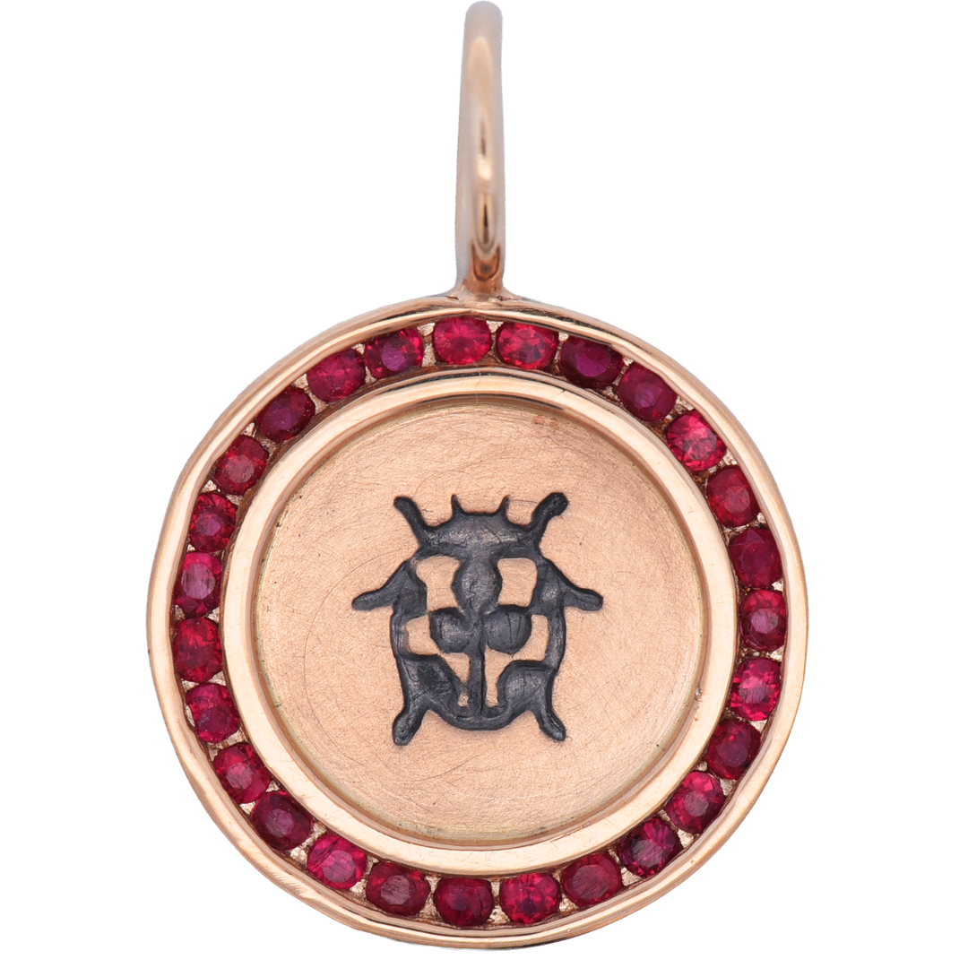 Add some good luck and protection to your growing collection with this sparkling 14k yellow gold mini channel set charm, hand stamped with the cutest ladybug. The 1.5mm Rubies are the best way to add some color.
