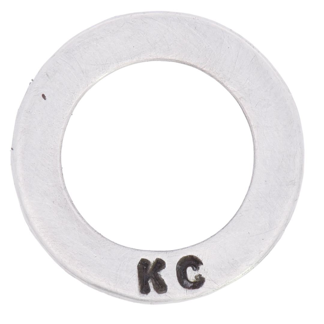 Your custom stamp was handcrafted from a solid piece of steel at the studio. Pressed directly into your jewelry, this stamp created something uniquely yours.