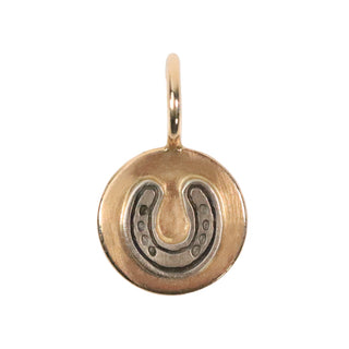 Make a statement that honors your pet with this beautiful horseshoe round charm. Crafted from 14k yellow gold, its unique horseshoe design is expertly hand stamped from 14k white gold. Showcase your love for your equestrian friend in style.