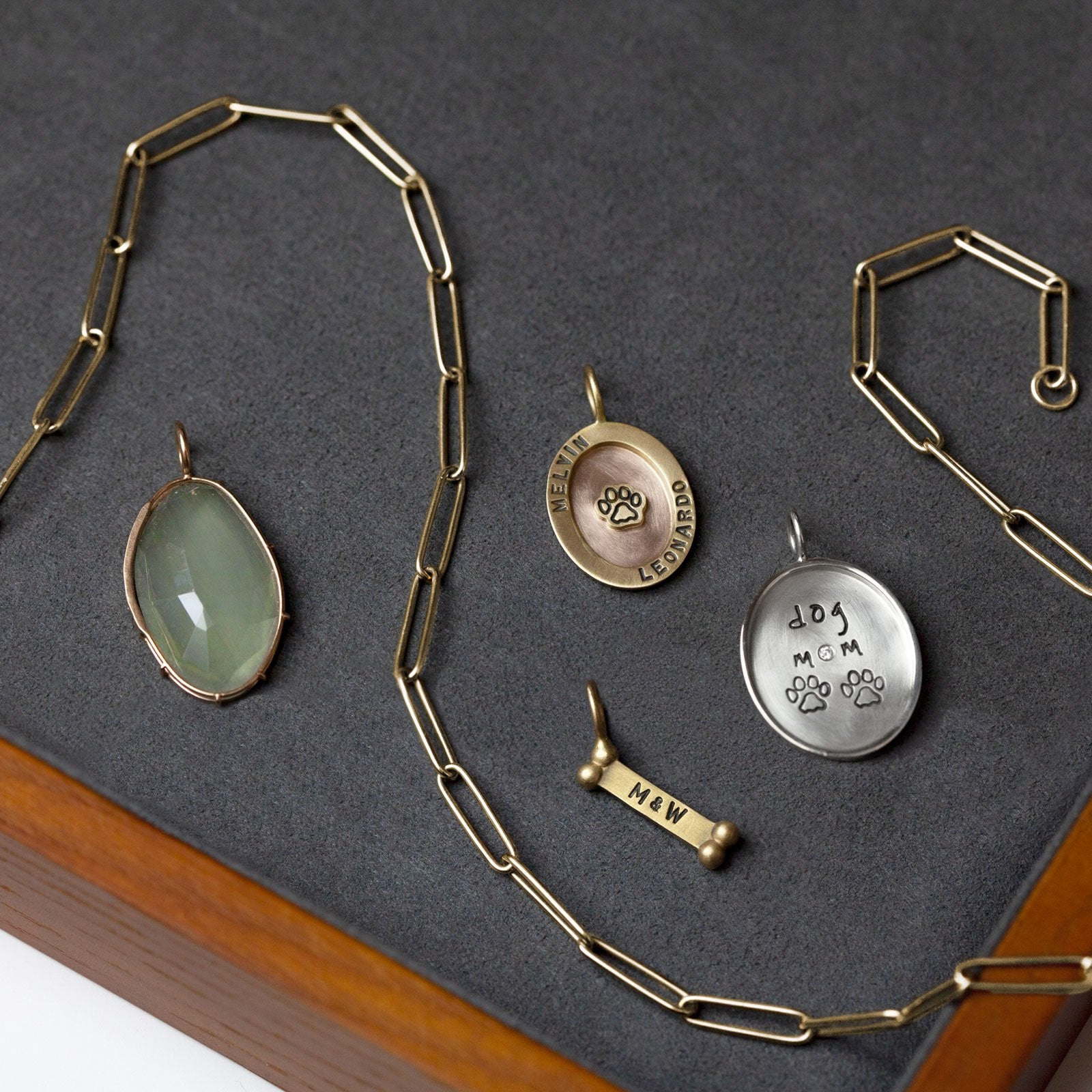Experience the beauty of a handmade sterling silver charm personalized with your pup's name. Unmatched craftsmanship turns your precious pet's name into a luxurious piece of jewelry that you can wear close to your heart.