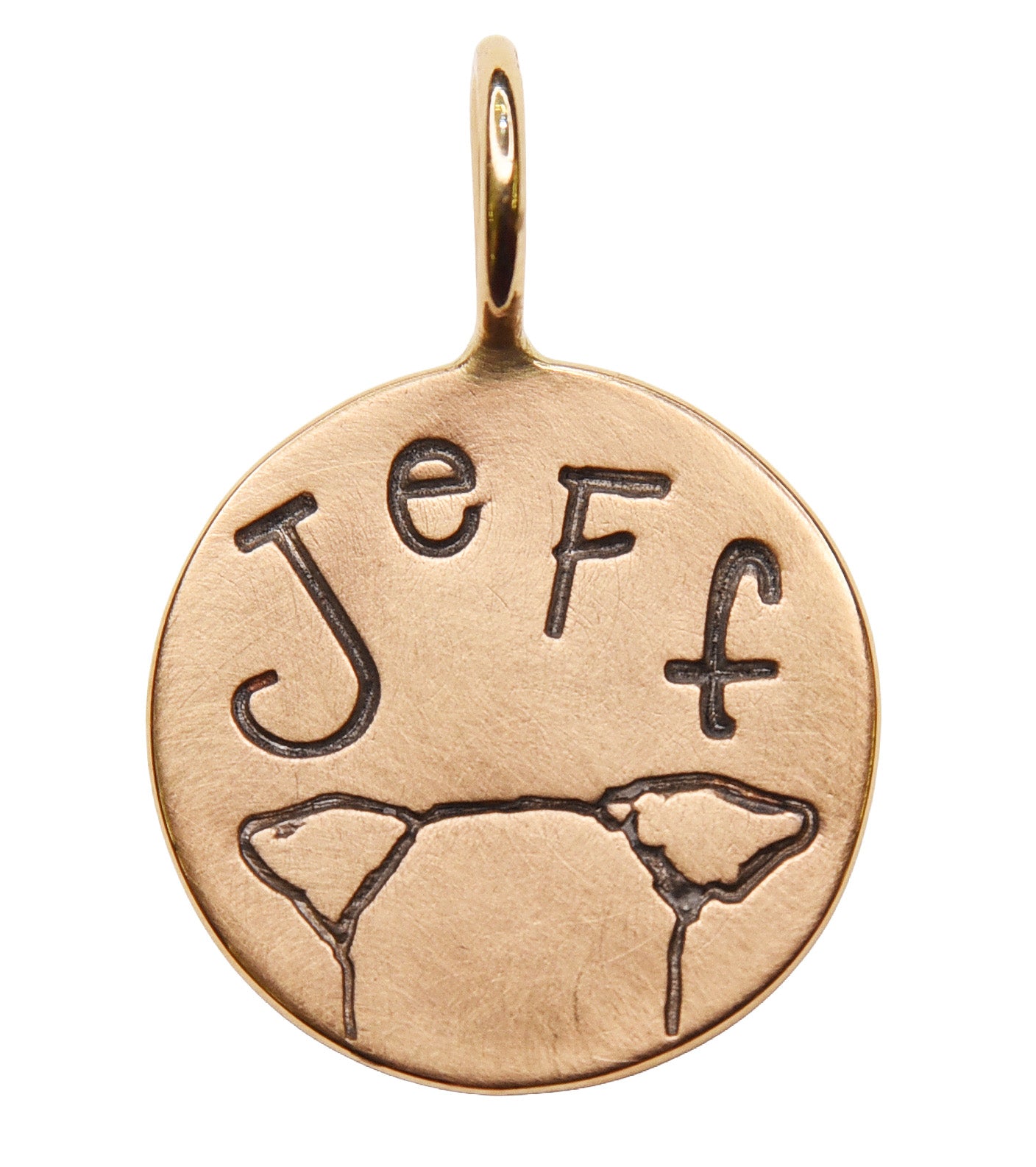 The PERFECT charm for the dog lover in your life. This solid 14k yellow gold charm features a custom cut stamp of your dogs ears and their name in various fonts above. Send us a pic of your dog and let us help you make the perfect sentimental charm.
