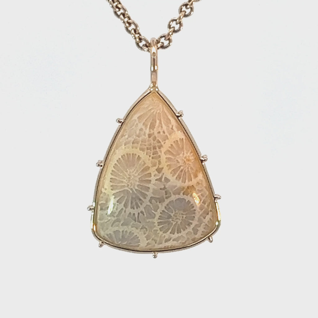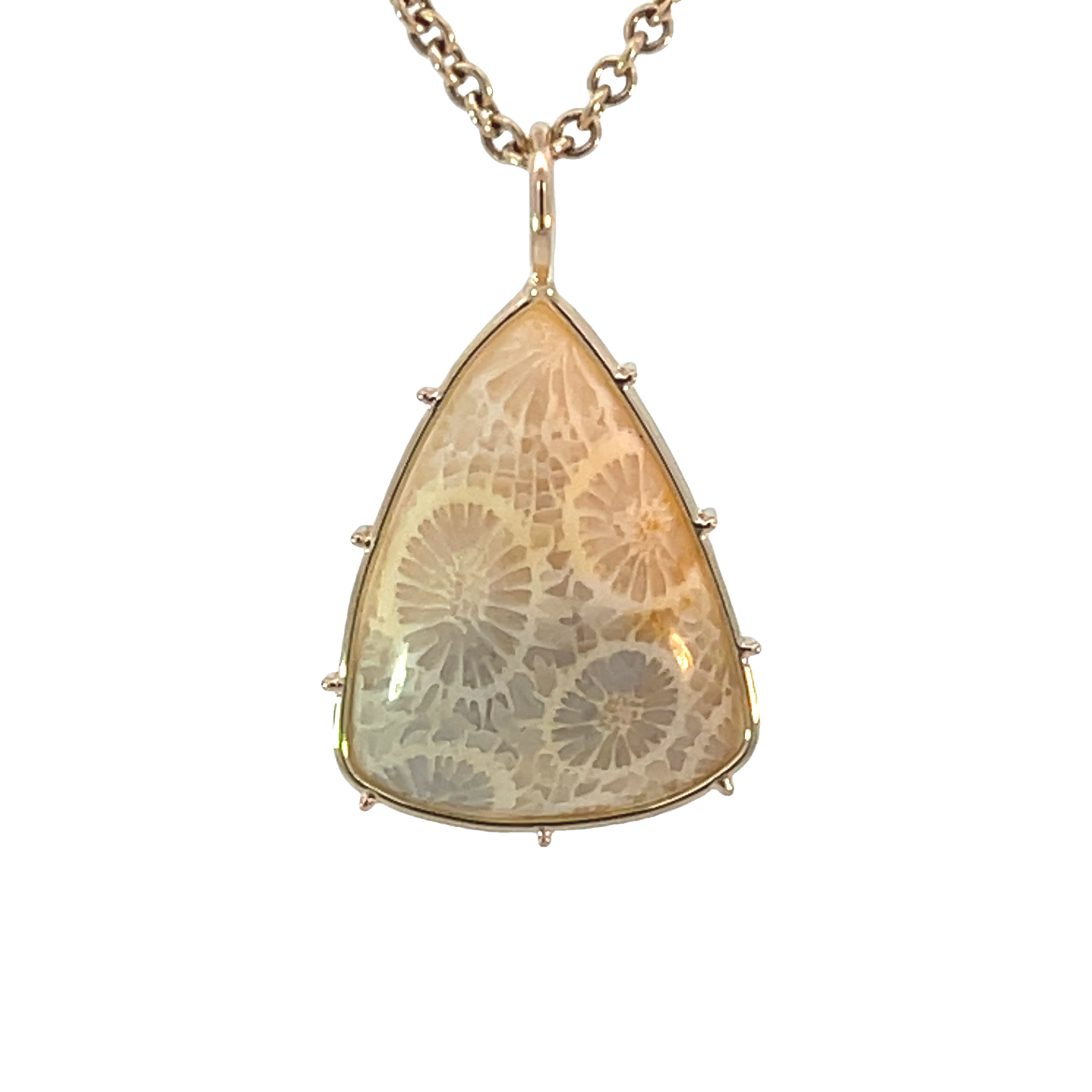 A Bunga agate Harriet Stone wrapped in yellow gold wire. The stone shown is the stone you will receive. Each Harriet Stone is unique, and once this stone is sold there may not be another like it.