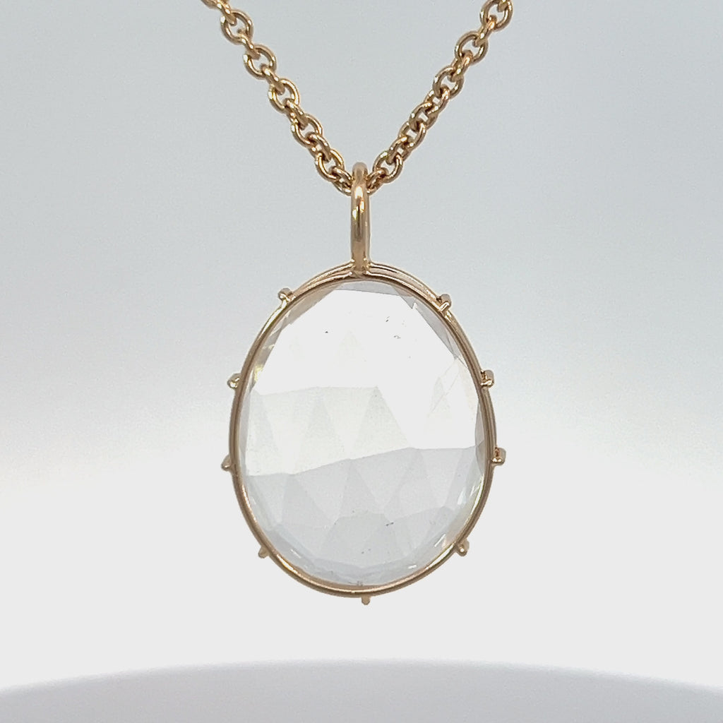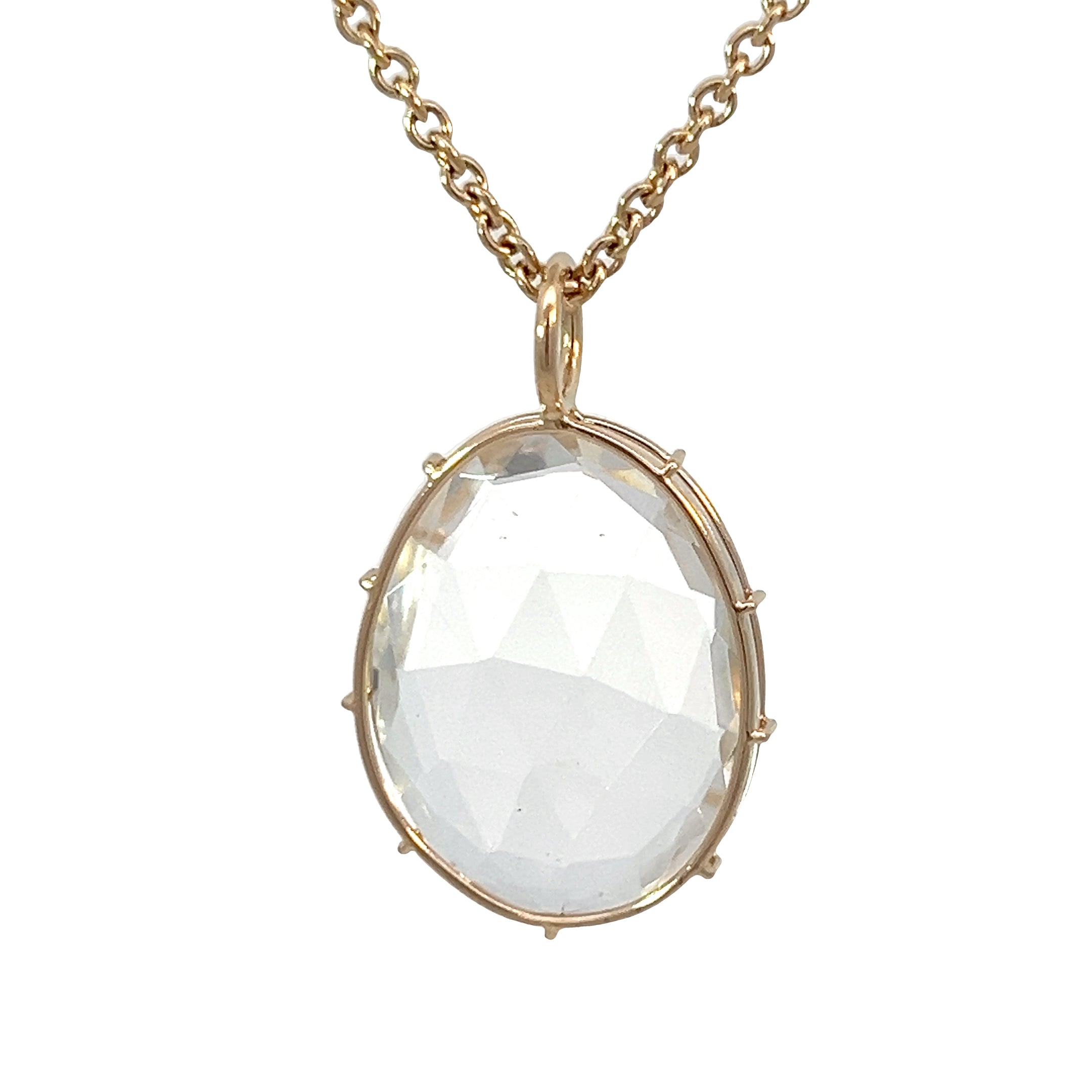 Medium white topaz Harriet Stone wrapped in yellow gold wire. The stone shown is the stone you will receive. Each Harriet Stone is unique, and once this stone is sold there may not be another like it.