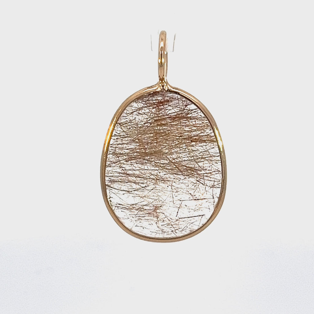 This one of a kind small red rutilated quartz is wrapped in a yellow gold Elizabeth frame. It is a one-off stone, and once it is gone, it is gone forever.