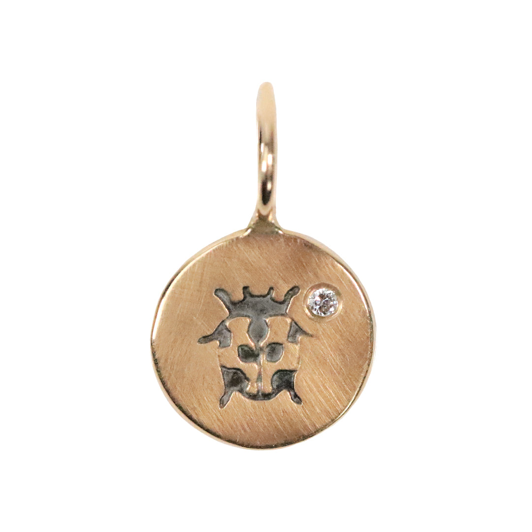 This exquisitely handcrafted 14k gold round charm is elegantly stamped with a delicate ladybug, symbolizing positive change and renewal. Own a piece of art that will elevate your style and add a touch of refined elegance to any outfit.