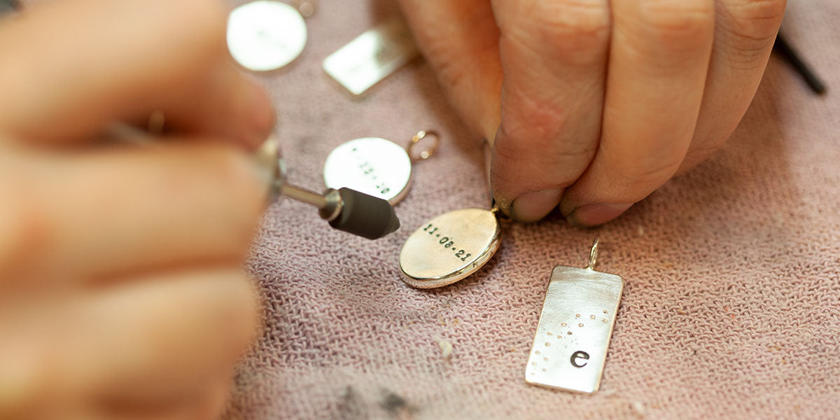We manufacture our own steel stamps, allowing our in-house steel shop to create tooling that can replicate a personal signature, sketch, logo, child’s drawing, and everything in between. We use a freehand technique where each letter, number, and symbol is hand stamped.