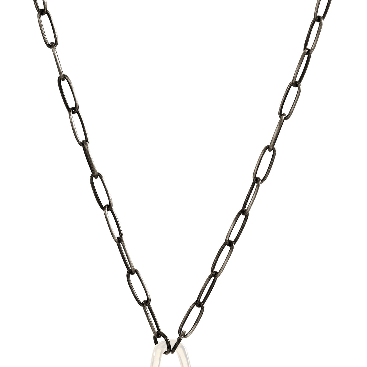 Experience our 2.9mm patina link hinge chain. Handcrafted from beautiful sterling silver, this patina finish brings a modern and masculine touch to this already stunning chain. Our unique design lets you hang your favorite charms from one of our beautiful hinges. Start building your unique masterpiece today.
