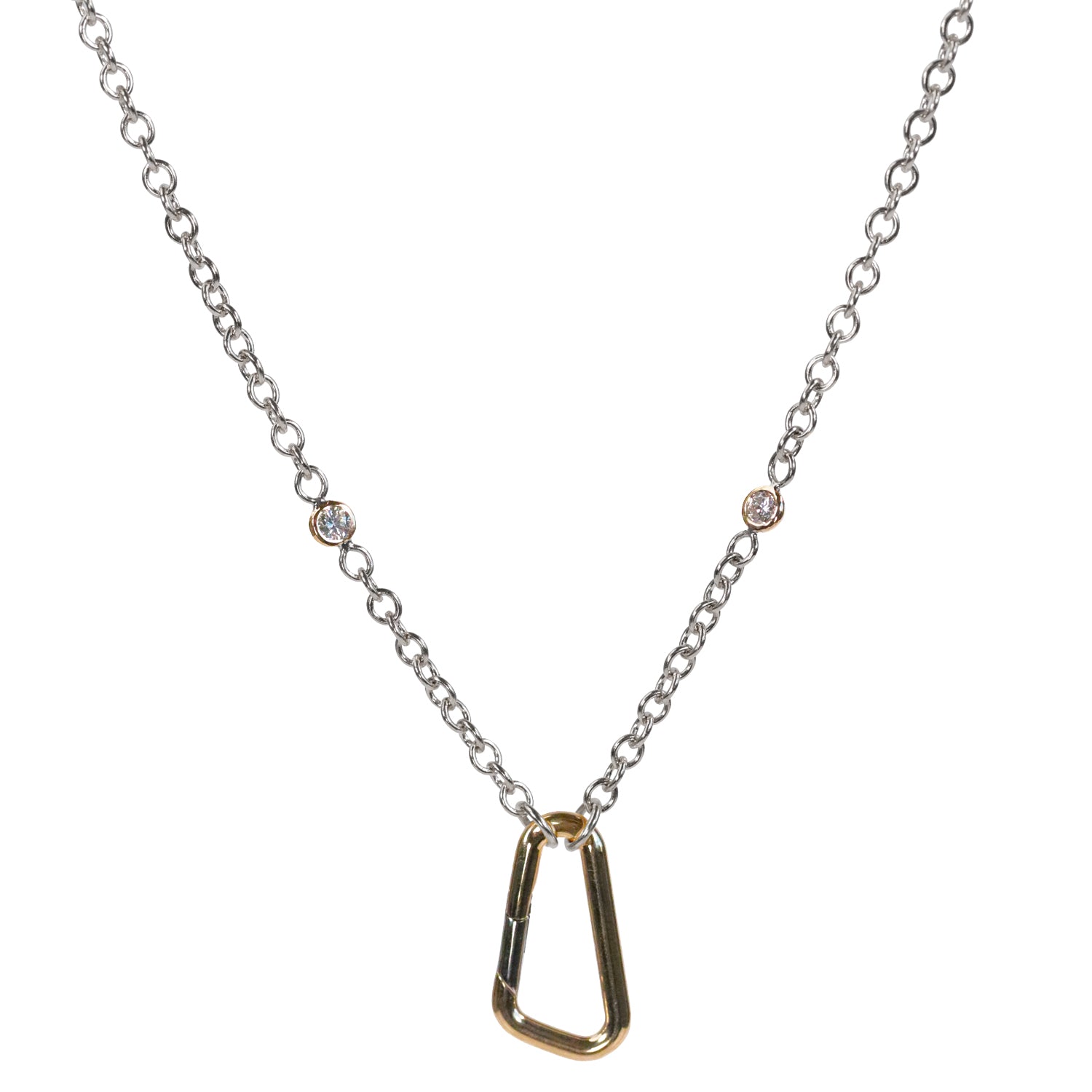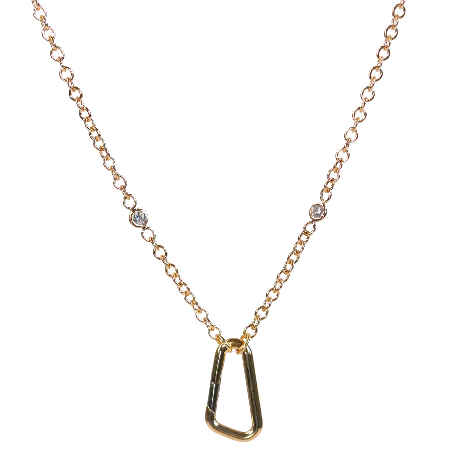 Experience our 20" 3mm hinge chain necklace featuring (2) 3mm diamonds set in yellow gold bezel cups. Handcrafted in either 14k yellow gold or sterling silver, this chain will elevate any outfit. Our unique design lets you hang your favorite charms from one of our beautiful hinges. Start building your unique masterpiece today.