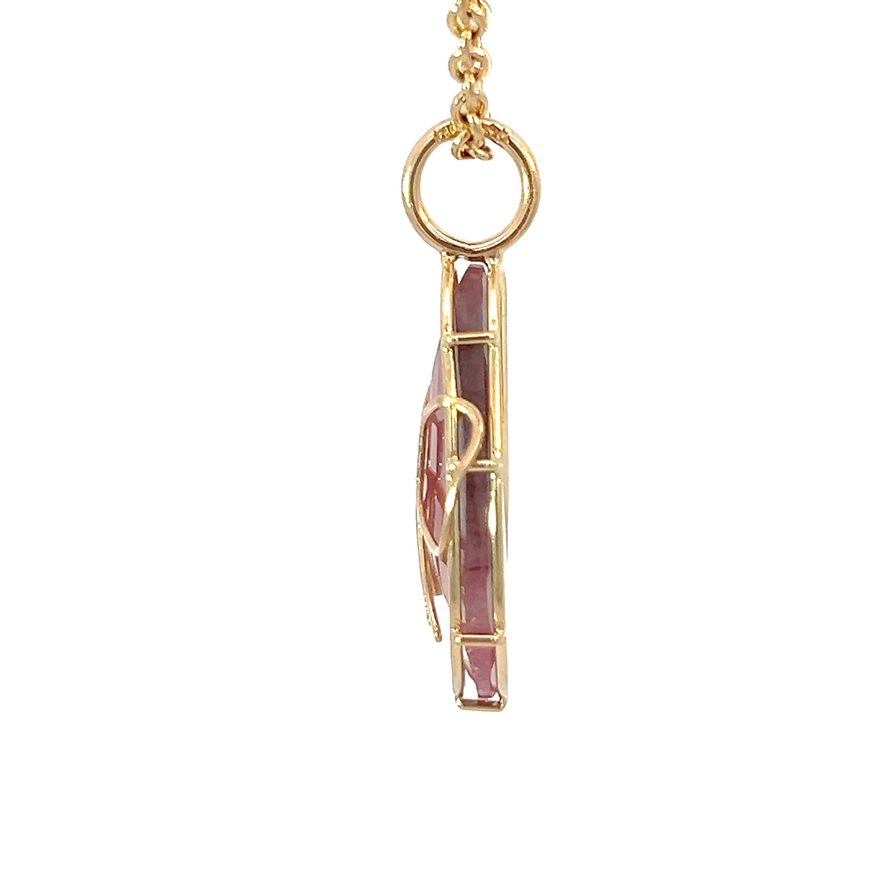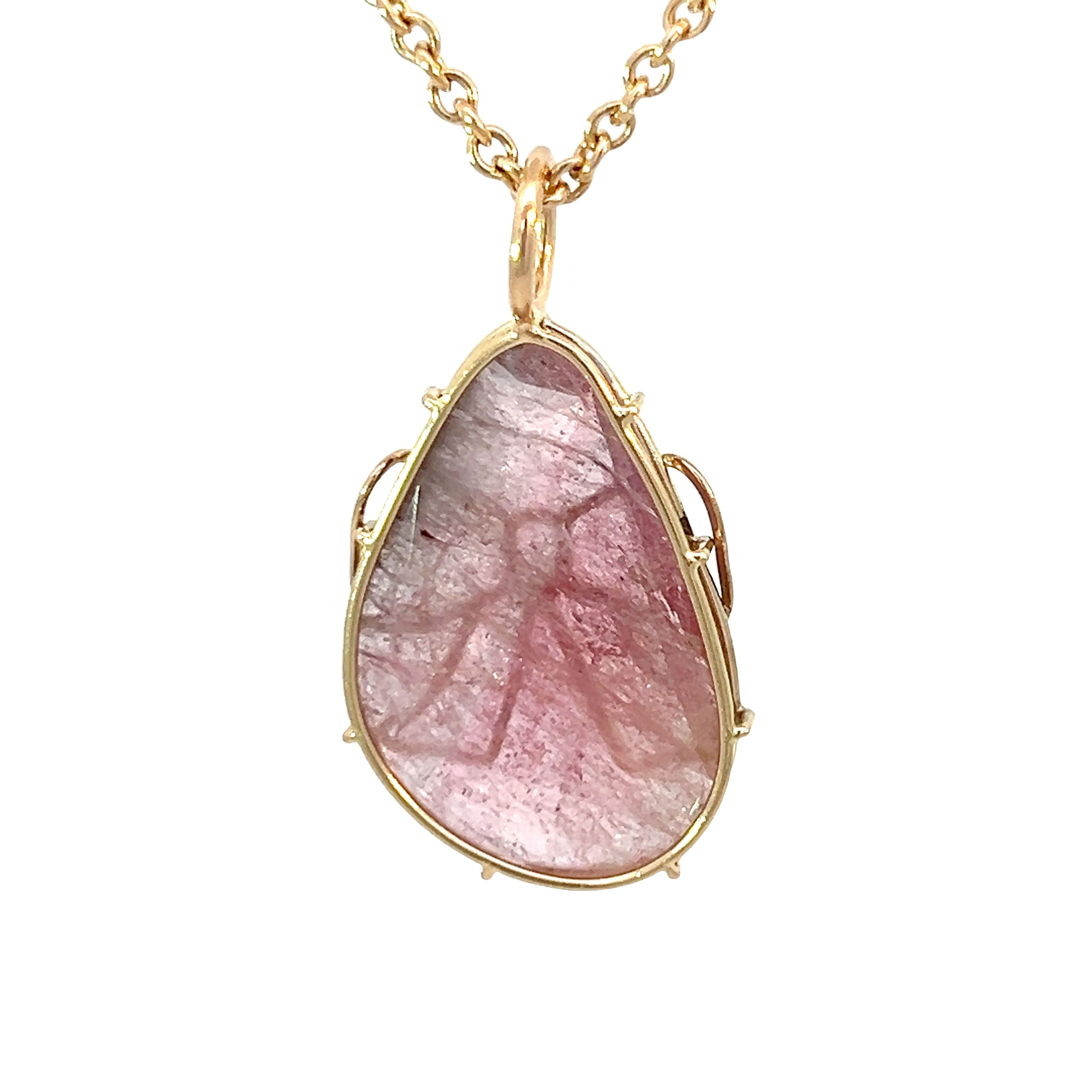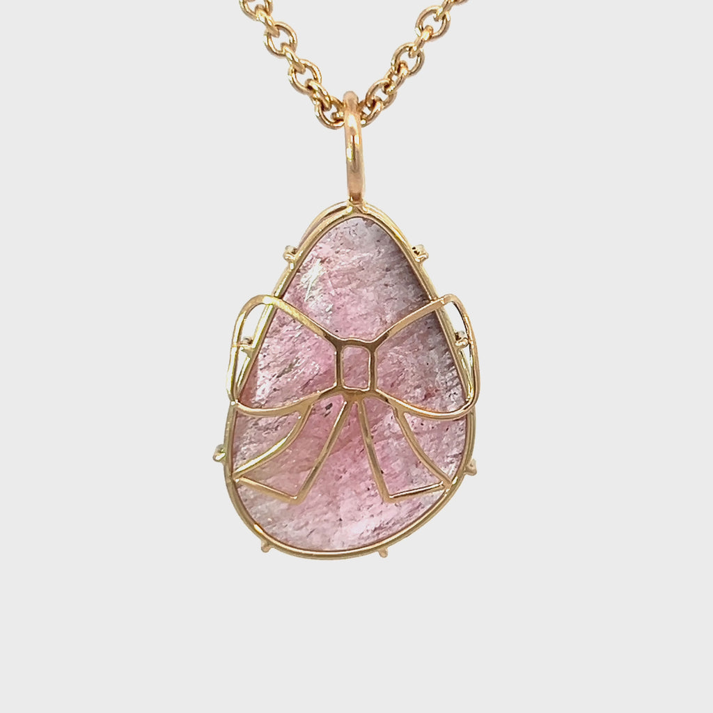 Small tourmaline Harriet Stone wrapped in yellow gold wire with a yellow gold bow over the face of the stone. The stone shown is the stone you will receive. Each Harriet Stone is unique, and once this stone is sold there may not be another like it.