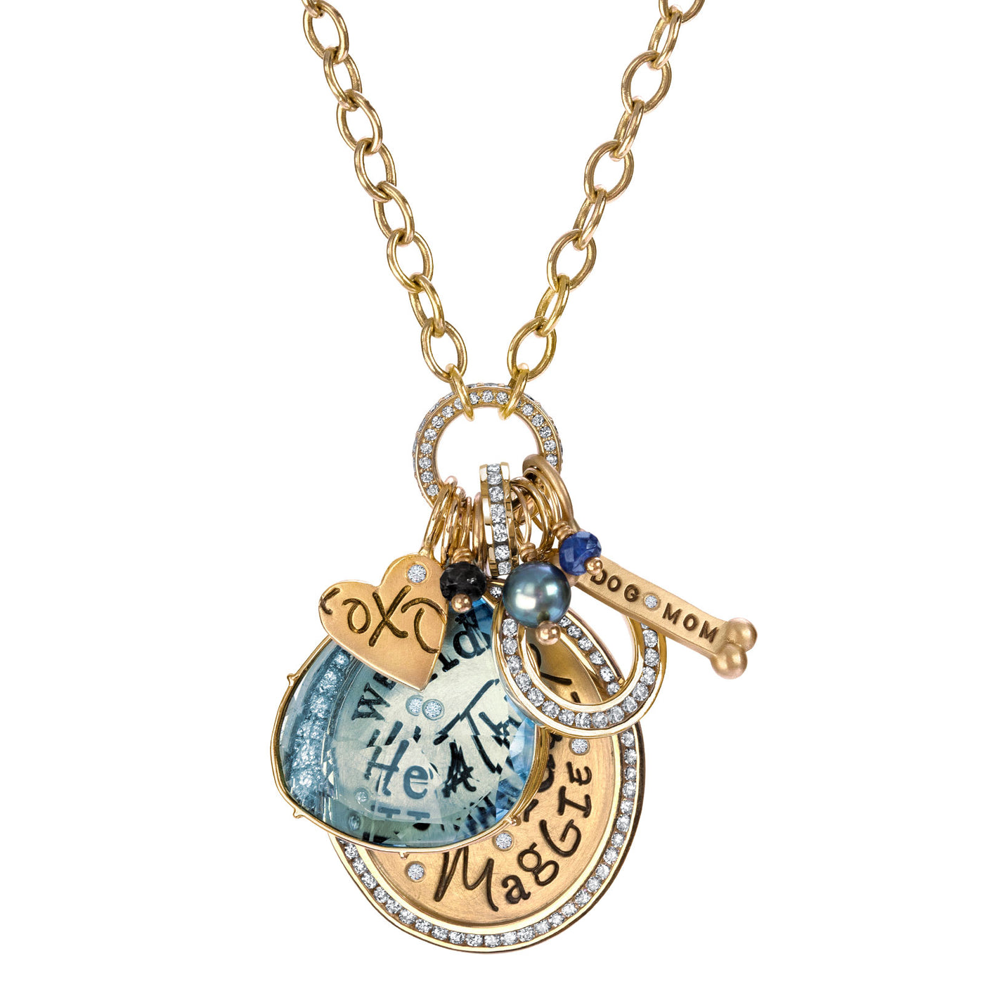 Celebrate your family with this beautiful handmade Family Oval Necklace. Personalize it with your family's names and a custom heart to showcase your love. It's surrounded by dazzling diamonds and a vibrant sky blue topaz. Show off your family's uniqueness.