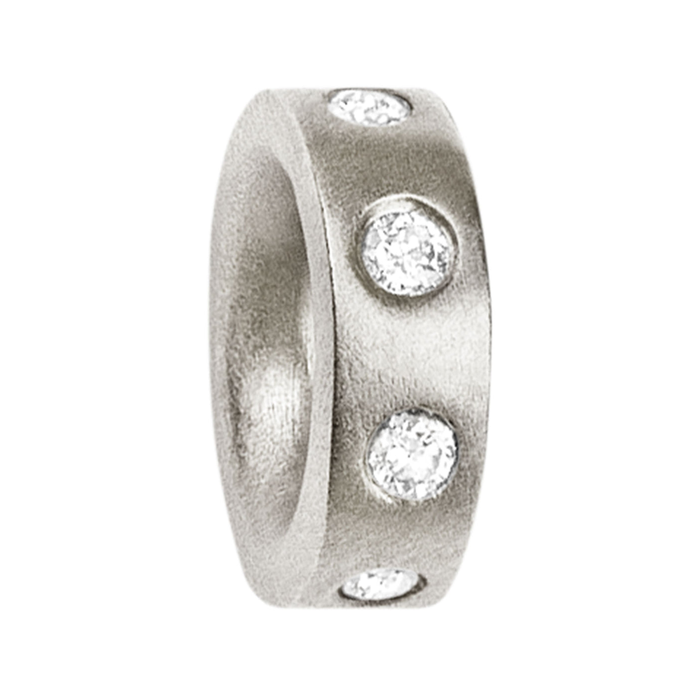 Silver flush set loop charm with 1.5mm white diamonds around the entire outside.