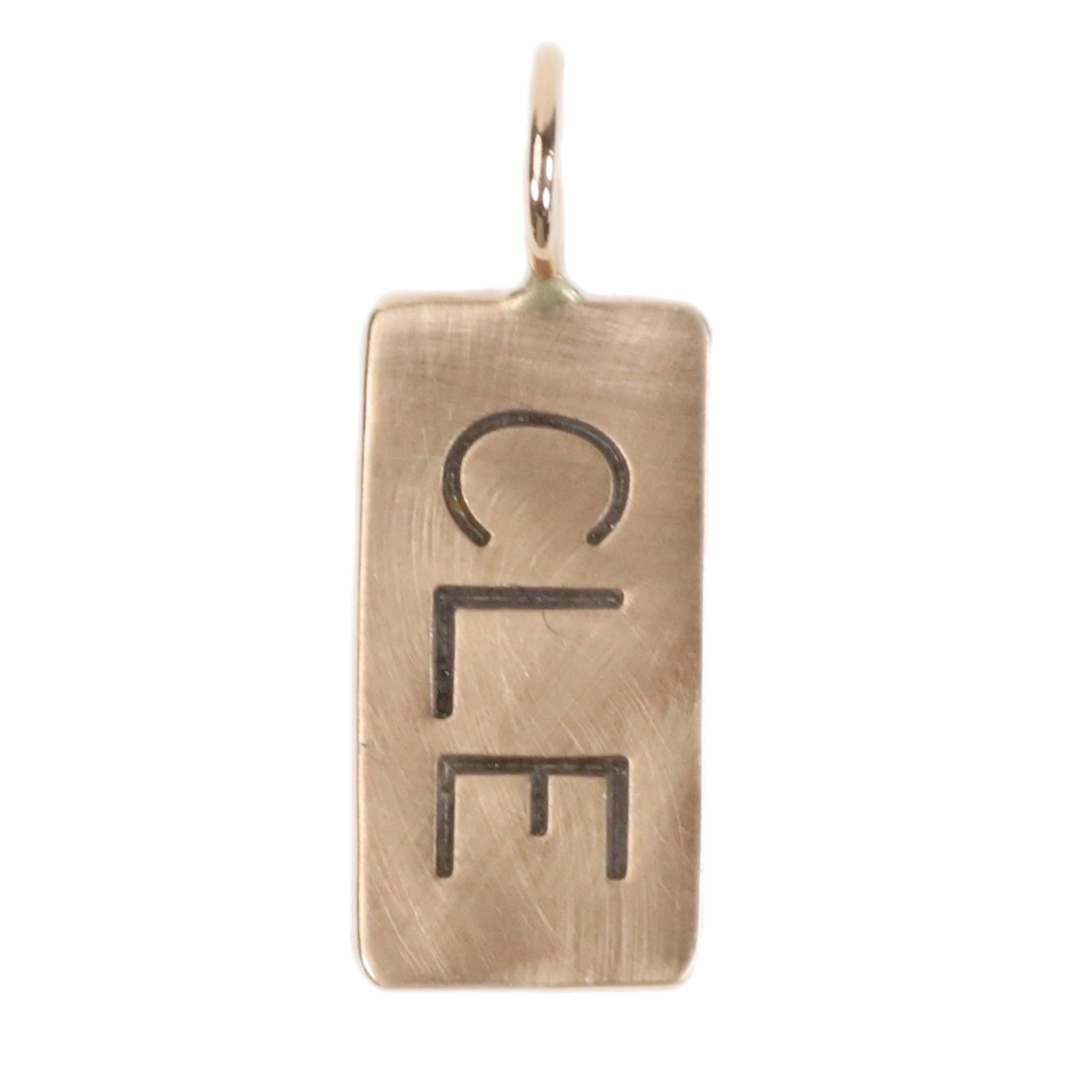Mini yellow gold ID tag. Hand stamped with CLE.