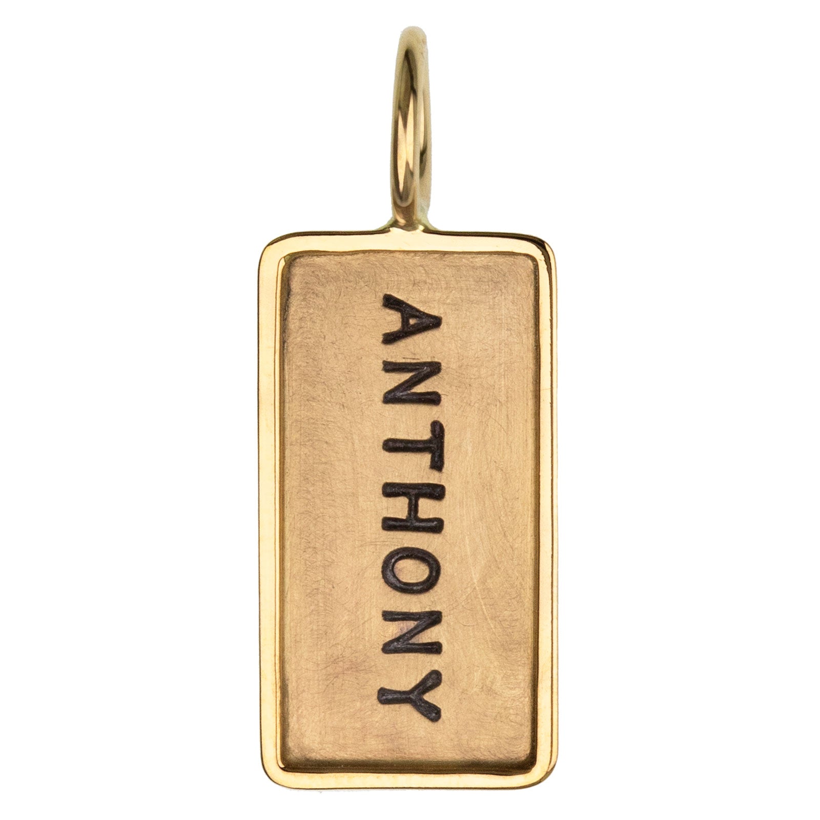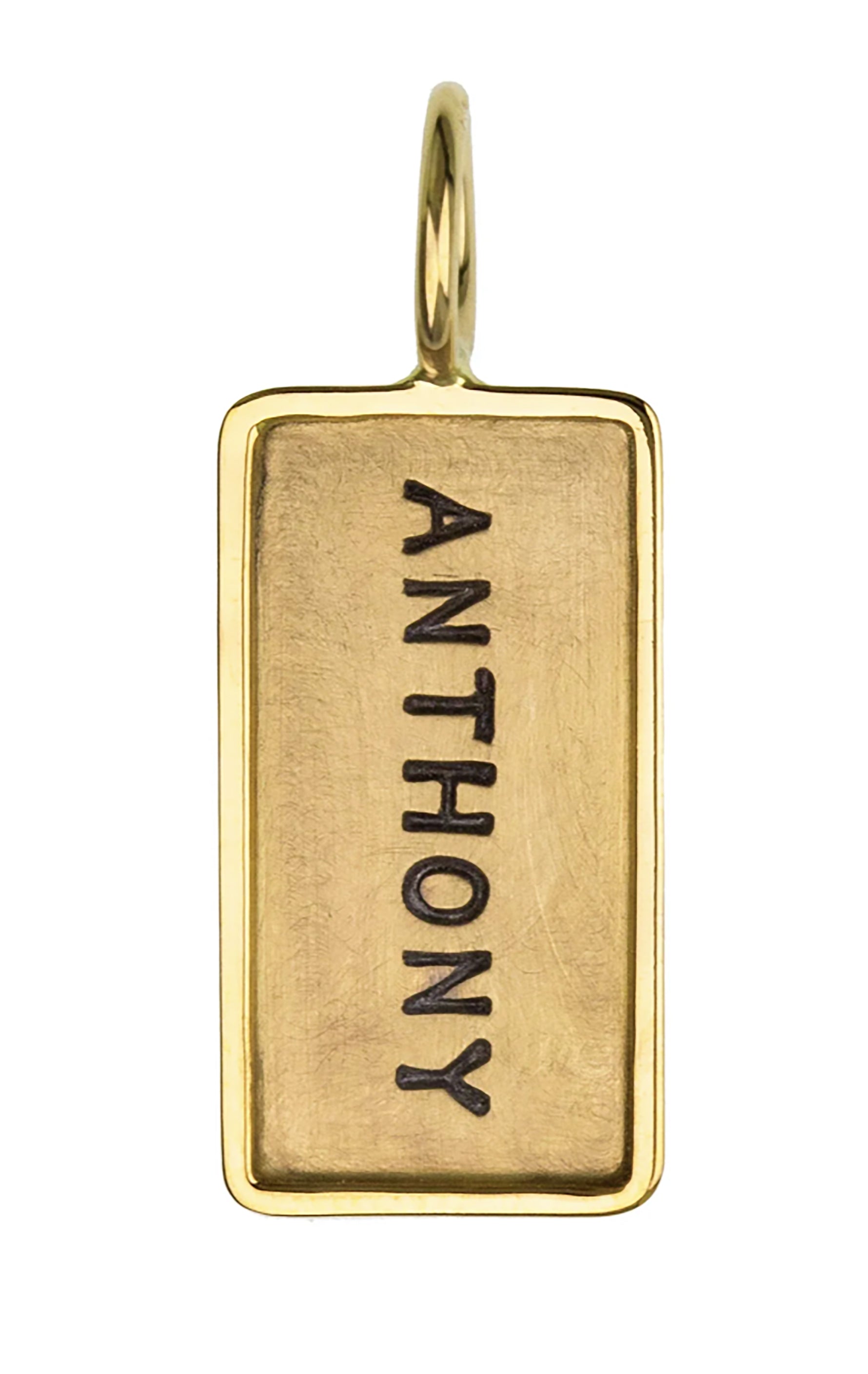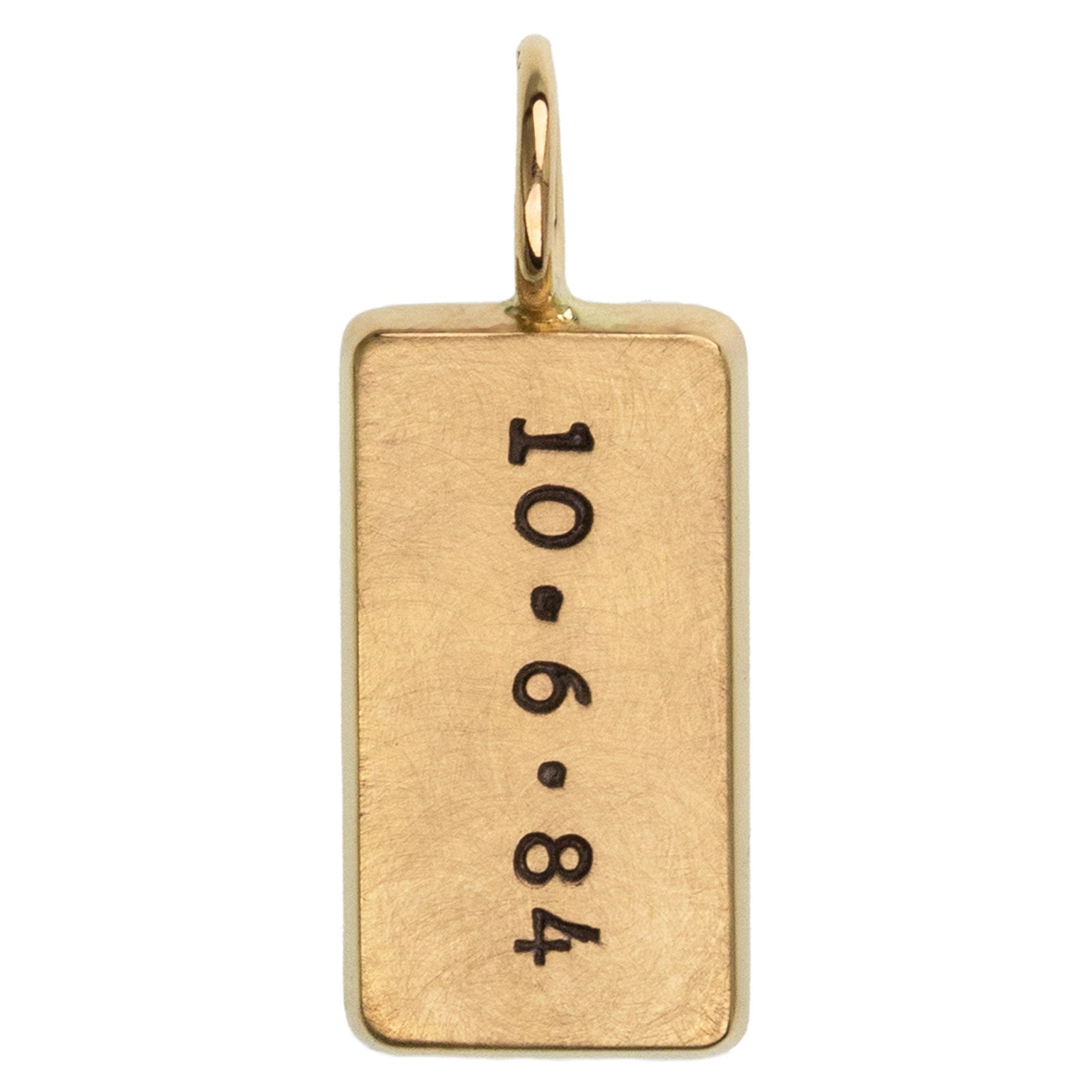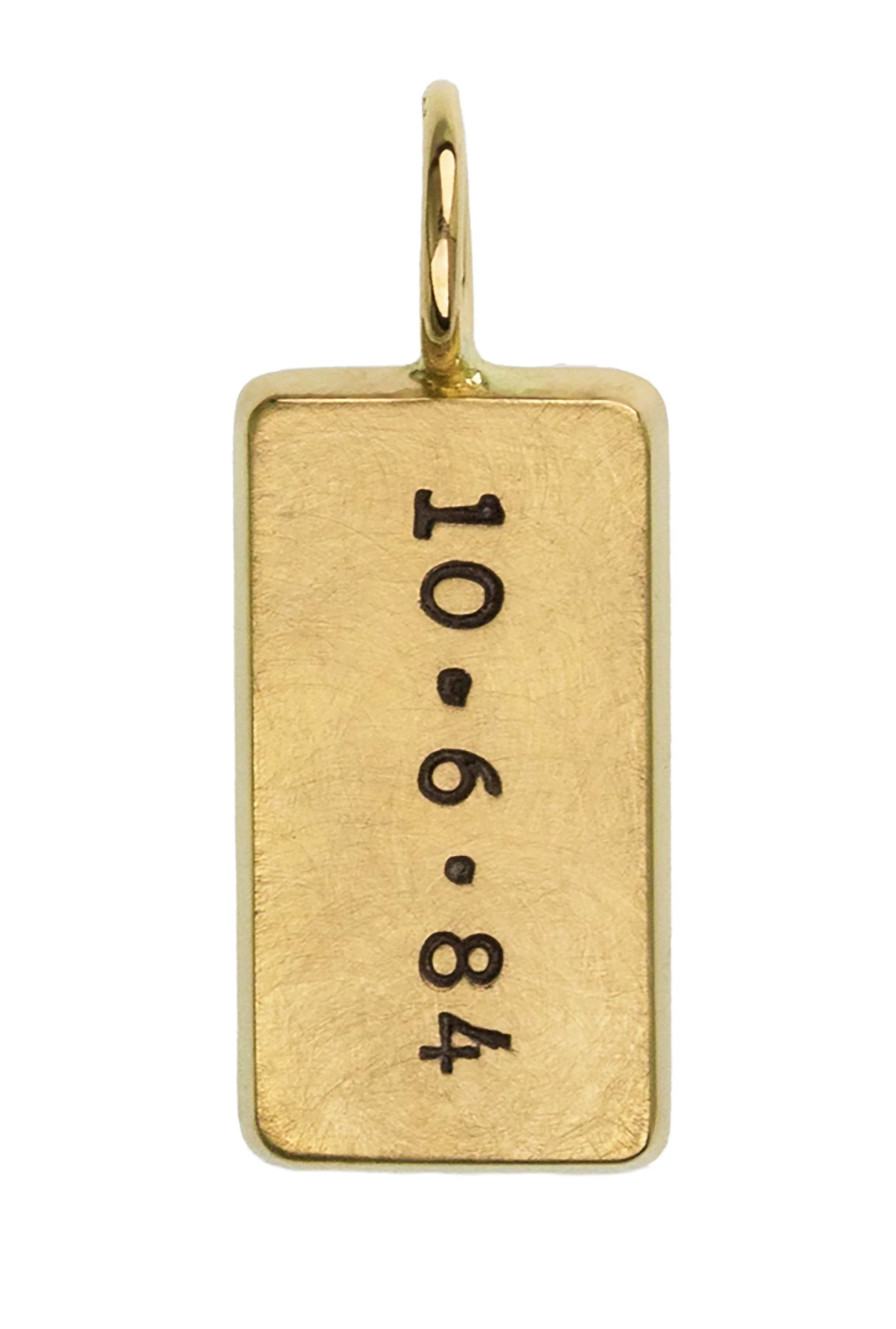 Highlight the unique bond between mothers and their children with this stunning, personalized mini ID tag. Crafted in either solid 14k or 18k gold and delicately hand-stamped with a name and date of your choosing, this heartfelt charm is truly one-of-a-kind. Make a lasting impression she won't forget.
