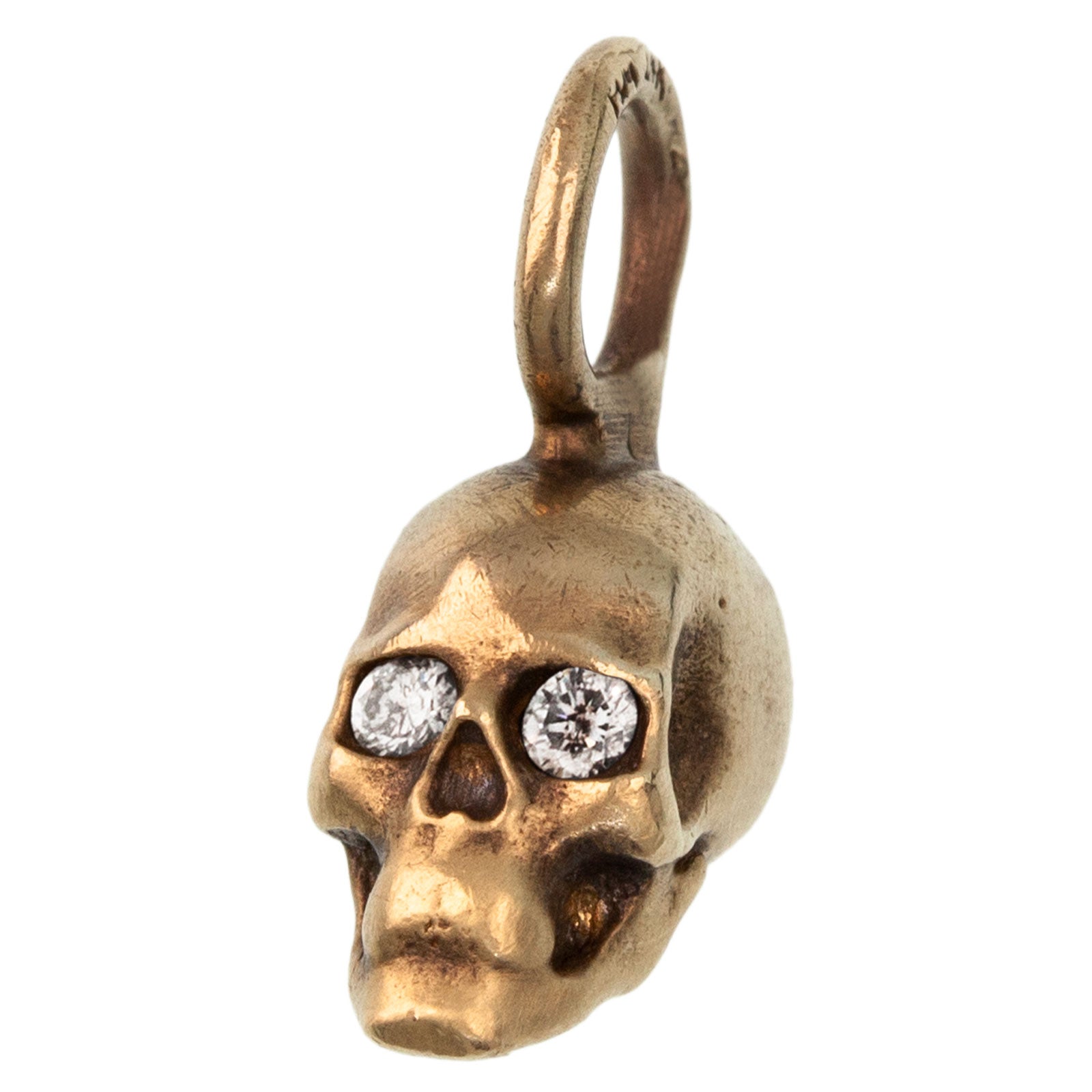 Solid gold patina skull Sculptural Series charm with two 2mm white diamonds. It features a 3-dimensional design that is beautiful from every angle.