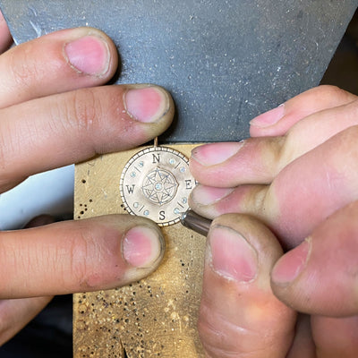 Heather's team of skilled artisans use a freehand technique, hand-stamping each letter, number, & symbol onto the jewelry. This attention to detail ensures that every piece is unique and holds a special meaning for its wearer.