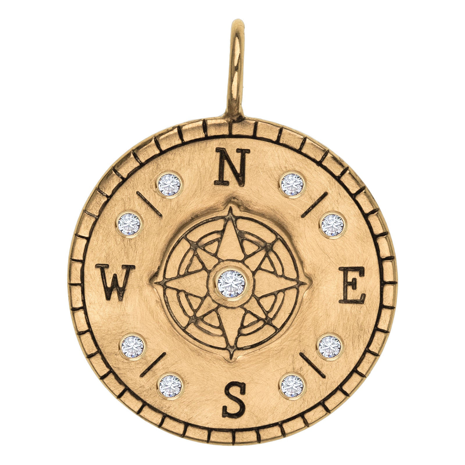 Discover the strength and direction of your true potential with this large handmade solid 14k gold round charm. Its compass and sparkling white diamonds will guide you to your highest aspirations – and remind you never to lose sight of your goals and dreams.