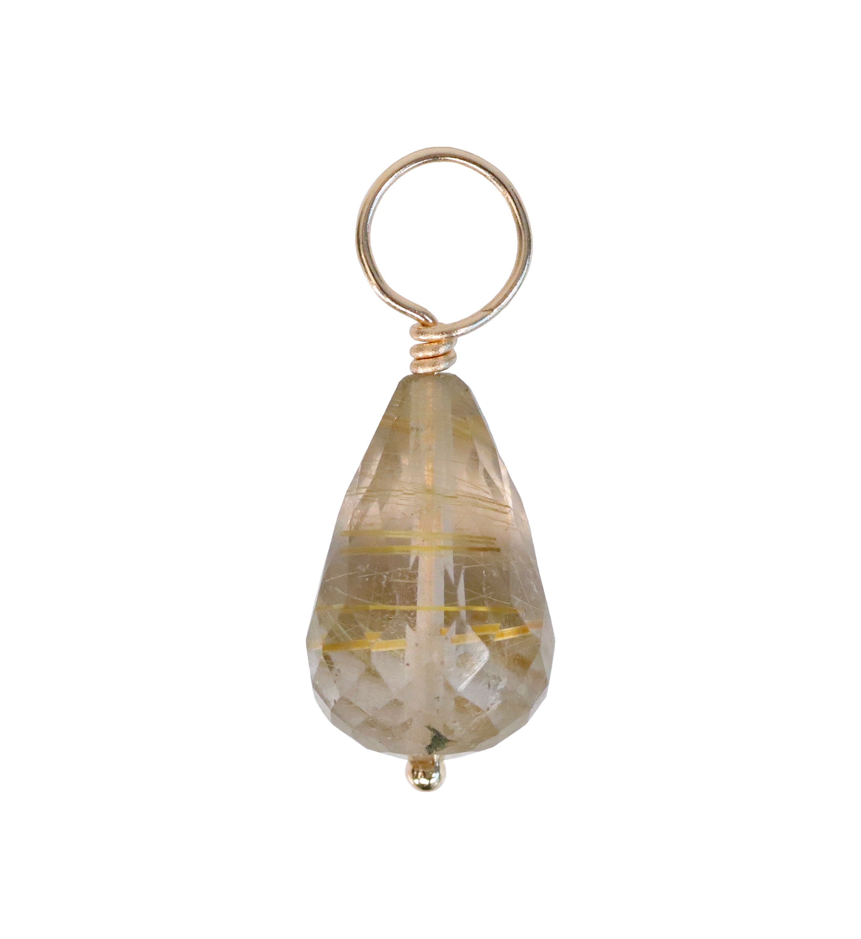 Gold Rutilated Quartz Faceted Drop Gemstone