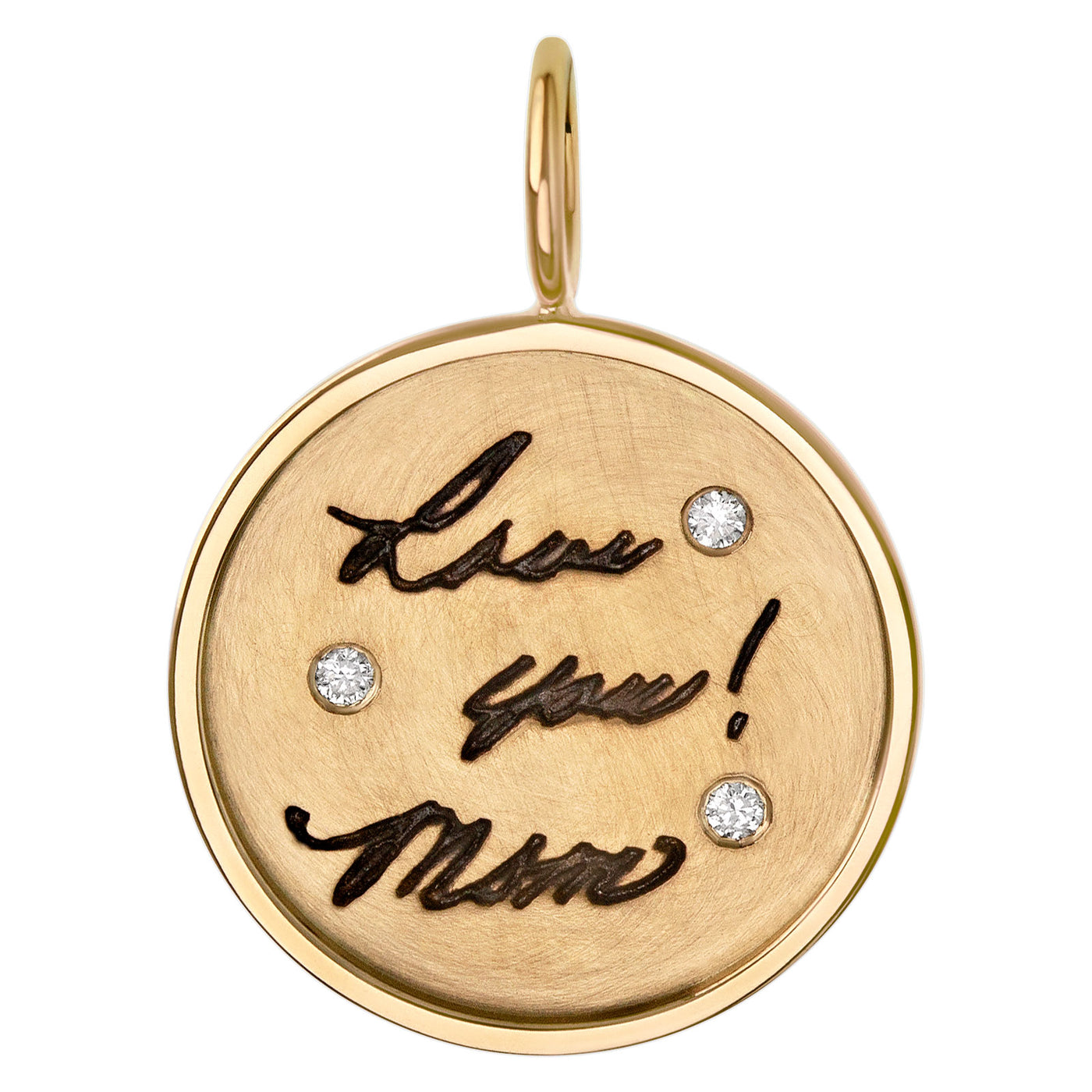Express your love and admiration with this personalized 14k yellow gold round charm. Crafted by hand, this charm features your own handwritten message surrounded by a gorgeous yellow gold frame and embellished with dazzling white diamonds. Invoke emotion with a one-of-a-kind gift that will be cherished forever.
