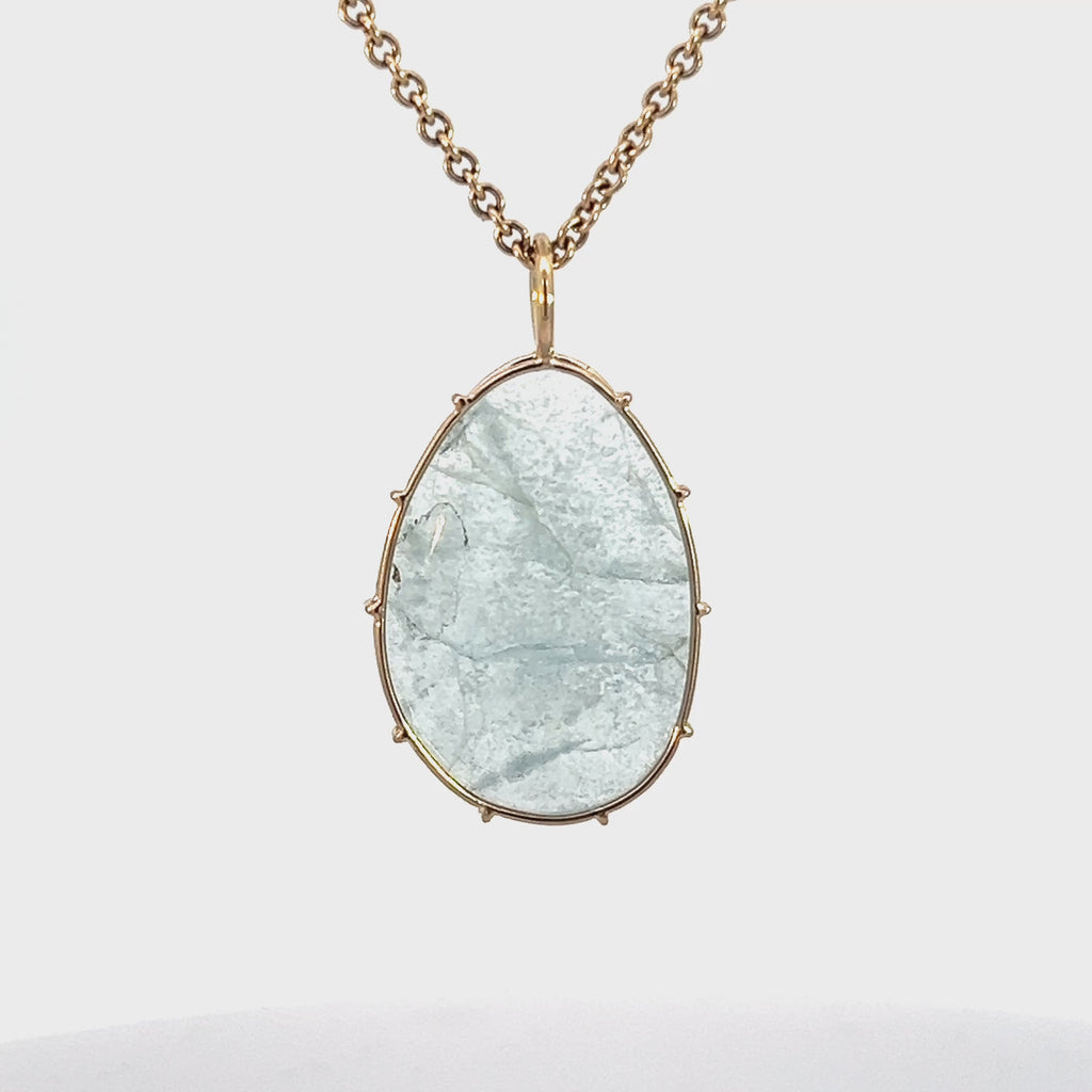 Large aquamarine Harriet Stone wrapped in yellow gold wire. The stone shown is the stone you will receive. Each Harriet Stone is unique, and once this stone is sold there may not be another like it.