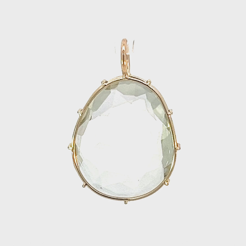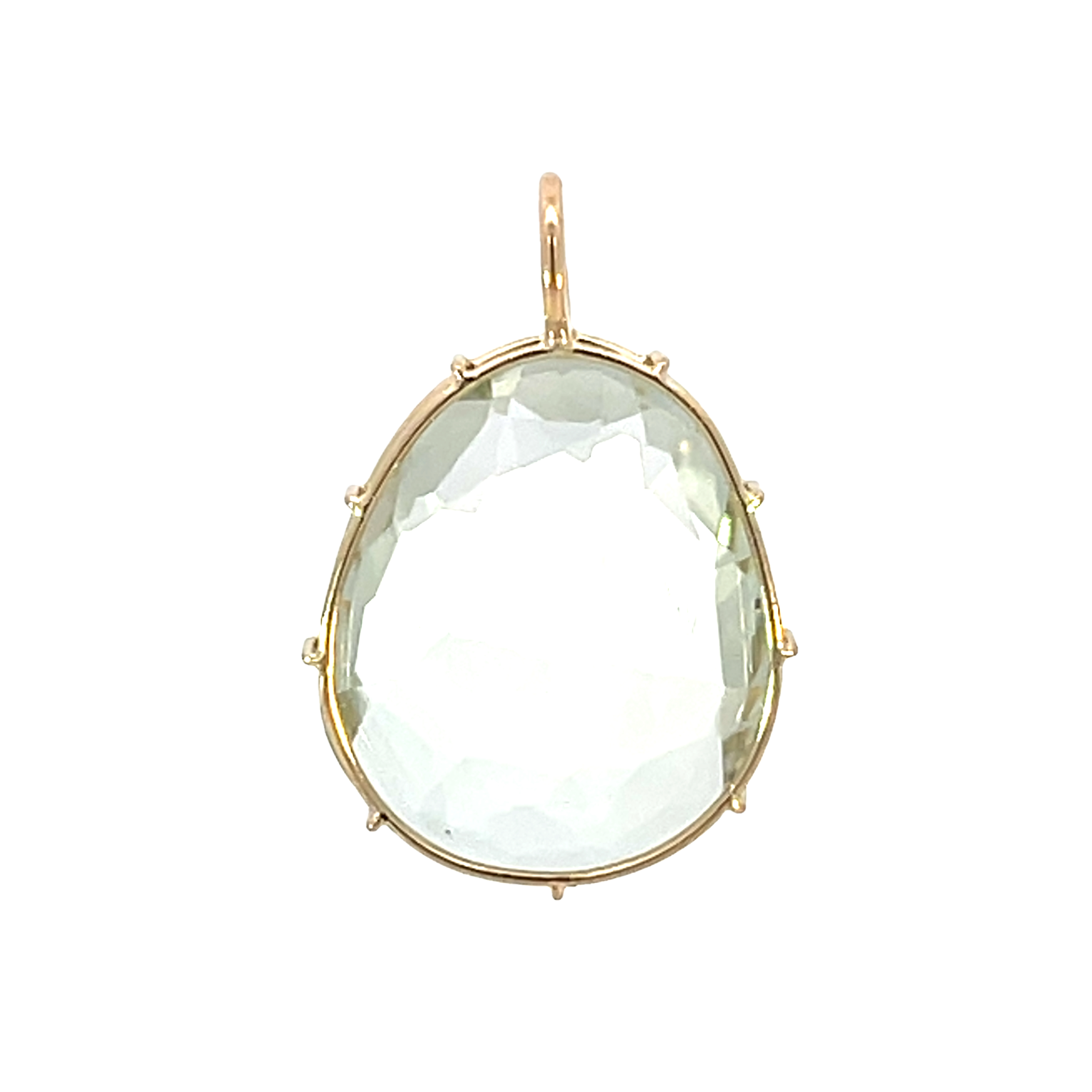 Large green amethyst Harriet Stone wrapped in yellow gold wire. The stone shown is the stone you will receive. Each Harriet Stone is unique, and once this stone is sold there may not be another like it.