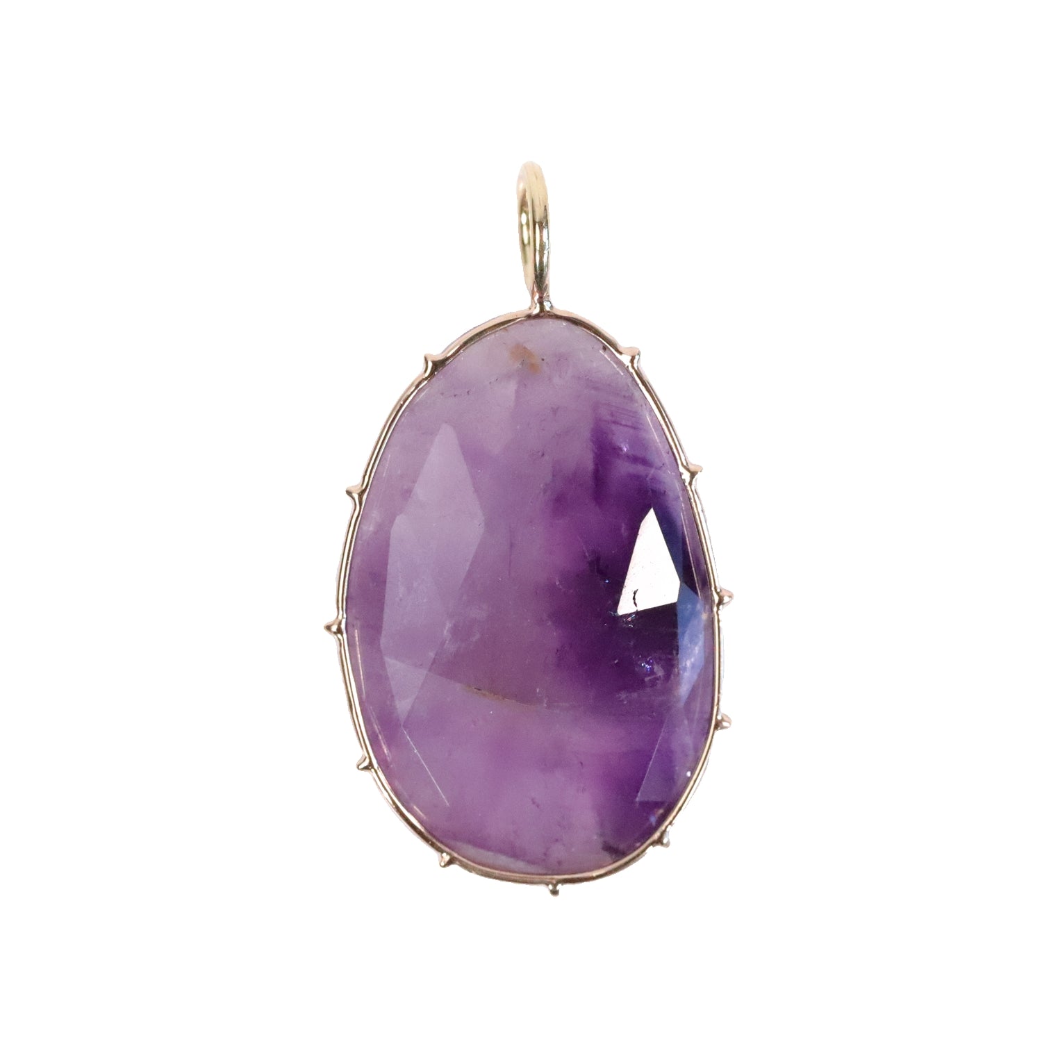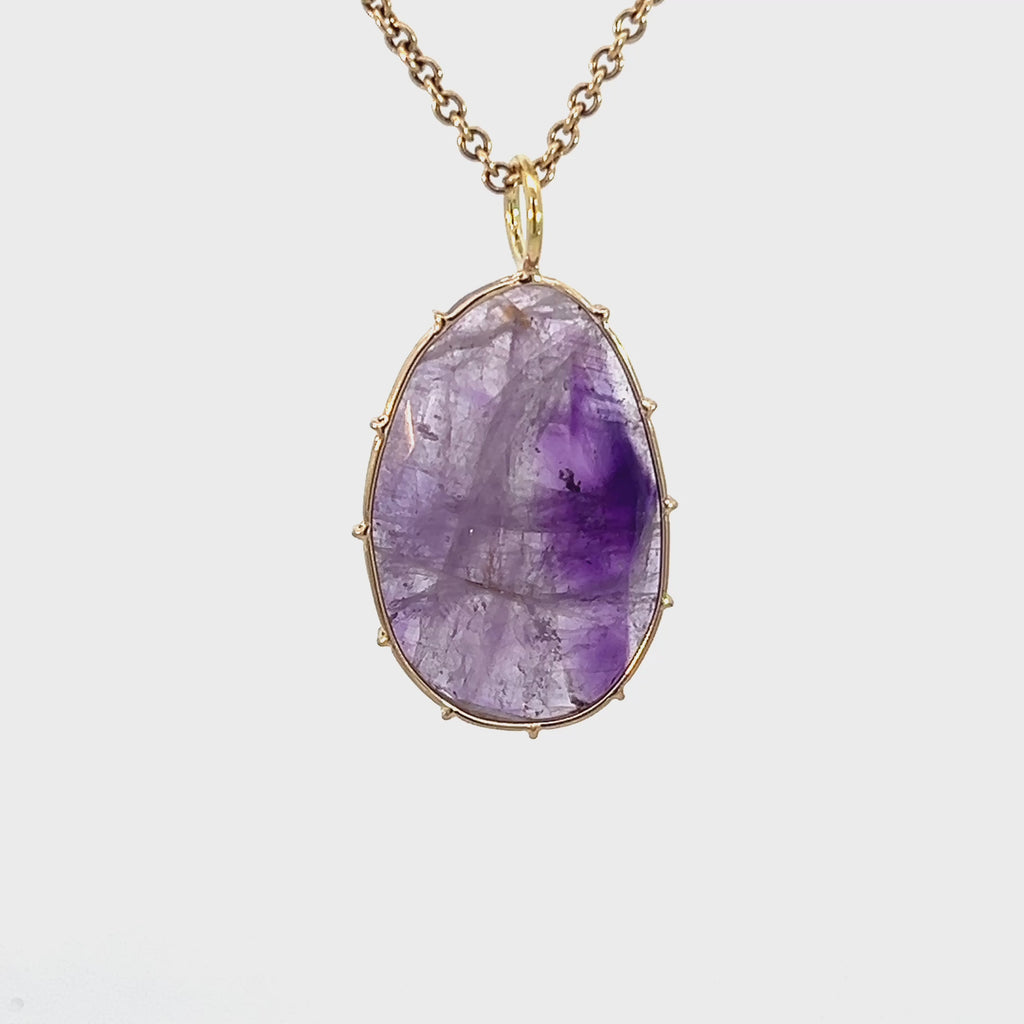 Large purple amethyst Harriet Stone wrapped in yellow gold wire. The stone shown is the stone you will receive. Each Harriet Stone is unique, and once this stone is sold there may not be another like it.