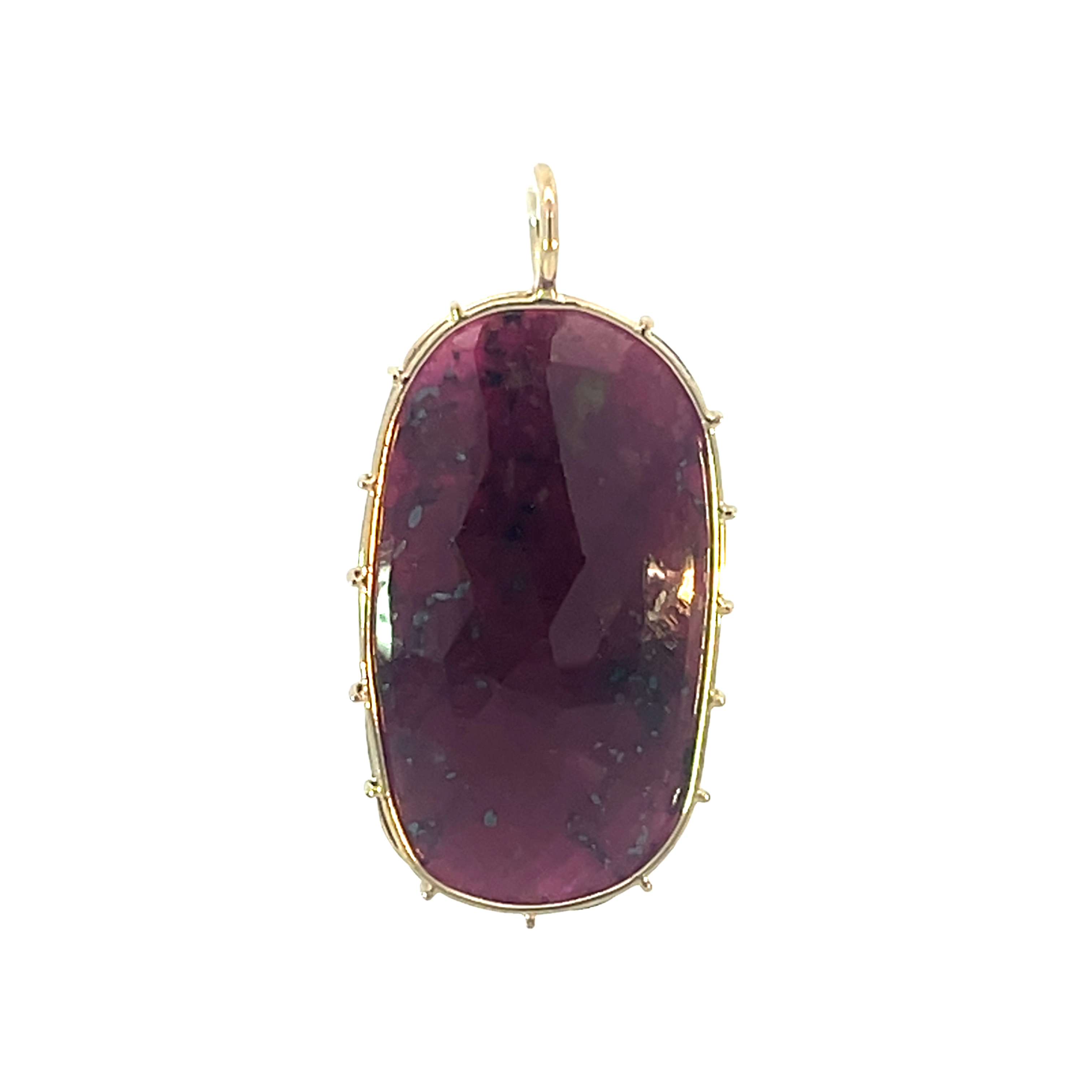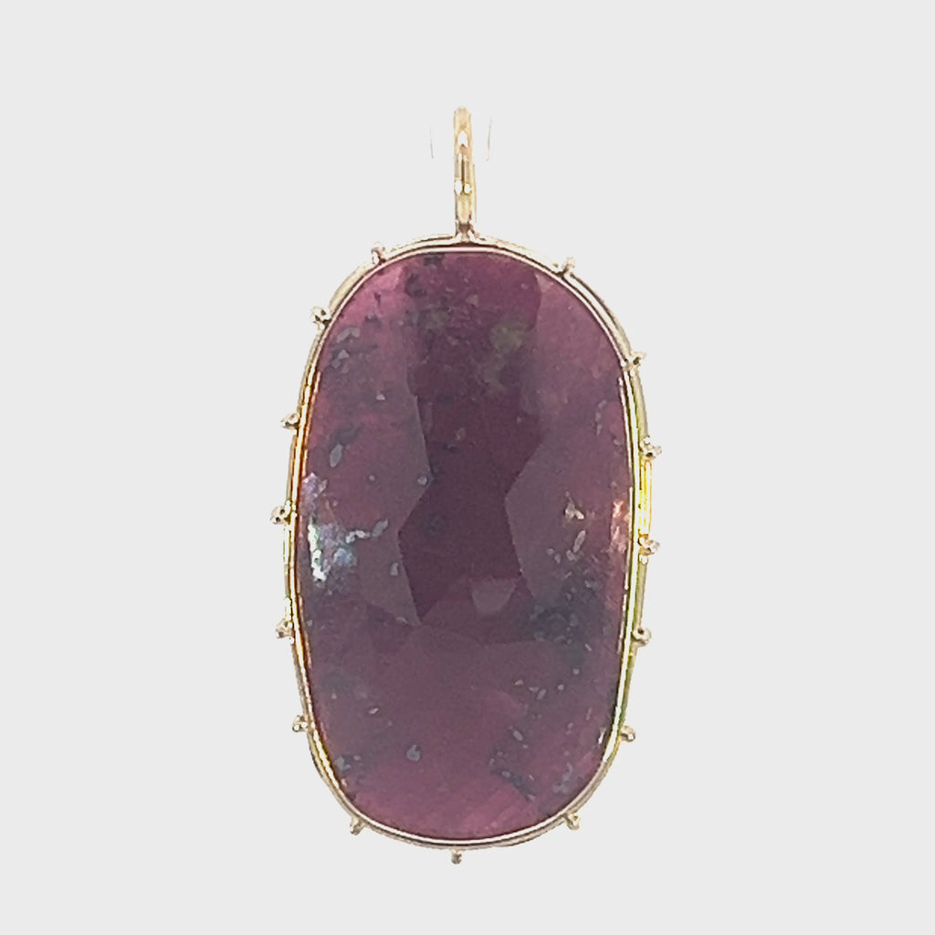 Large ruby Harriet Stone wrapped in yellow gold wire. The stone shown is the stone you will receive. Each Harriet Stone is unique, and once this stone is sold there may not be another like it.