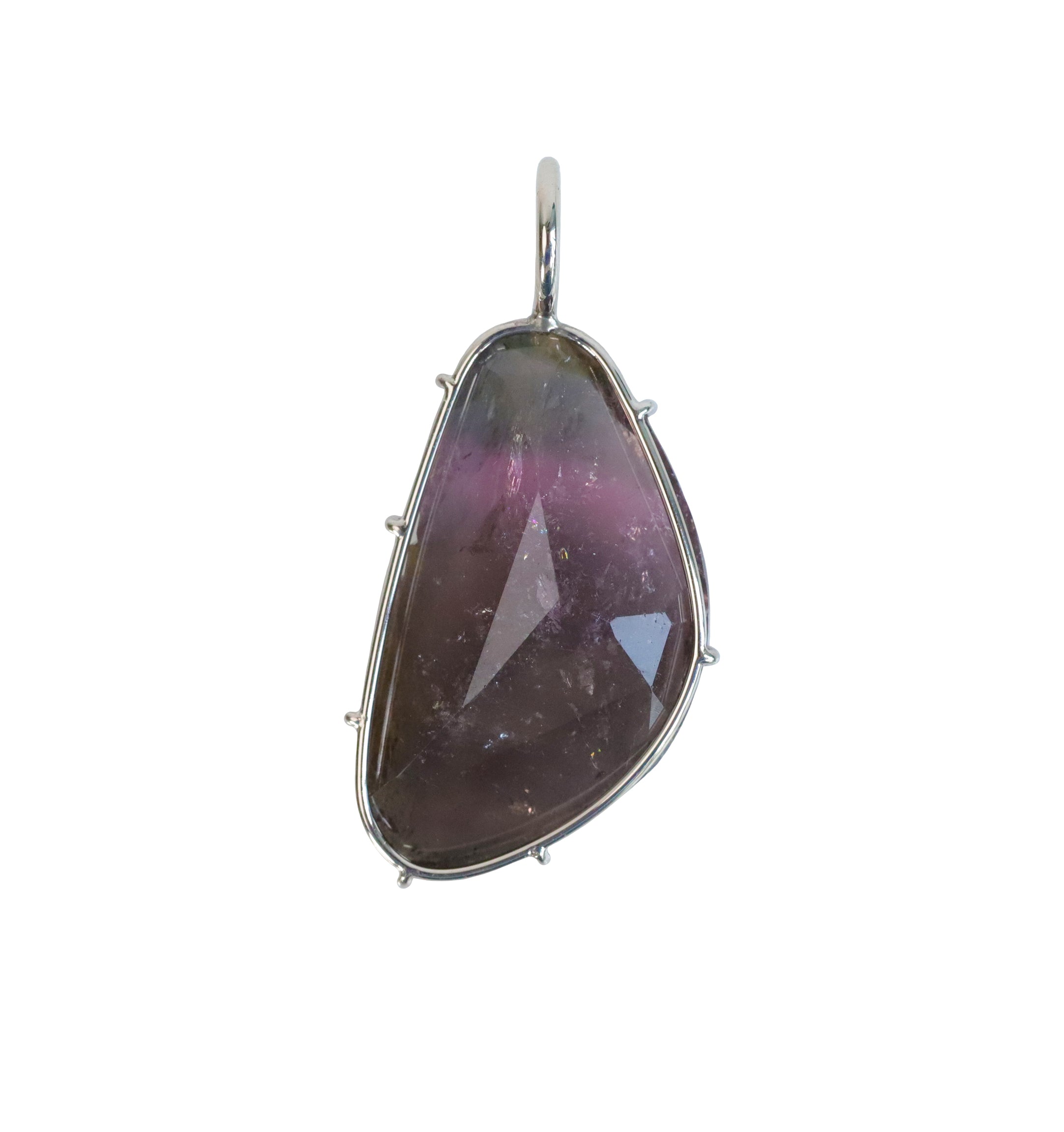 Medium multicolored tourmaline Harriet Stone wrapped in white gold wire. The stone shown is the stone you will receive. Each Harriet Stone is unique, and once this stone is sold there may not be another like it.