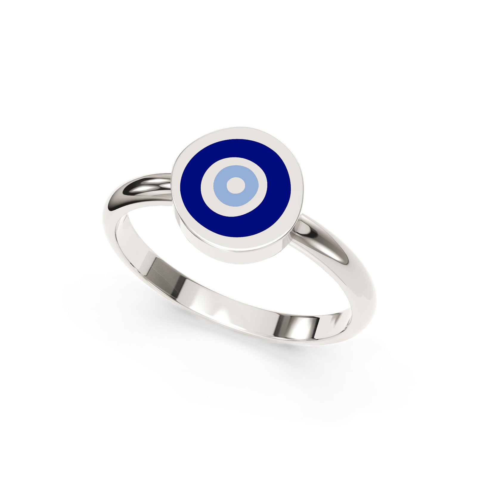 Indulge in the exquisite craftsmanship of our Silver Enamel Evil Eye Ring. Handmade with sterling silver, this stunning ring features an enamel evil eye, adding a touch of color and protection to any outfit. Perfect for expressing your passion and unique style.