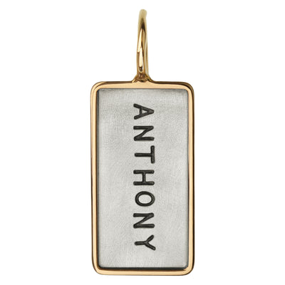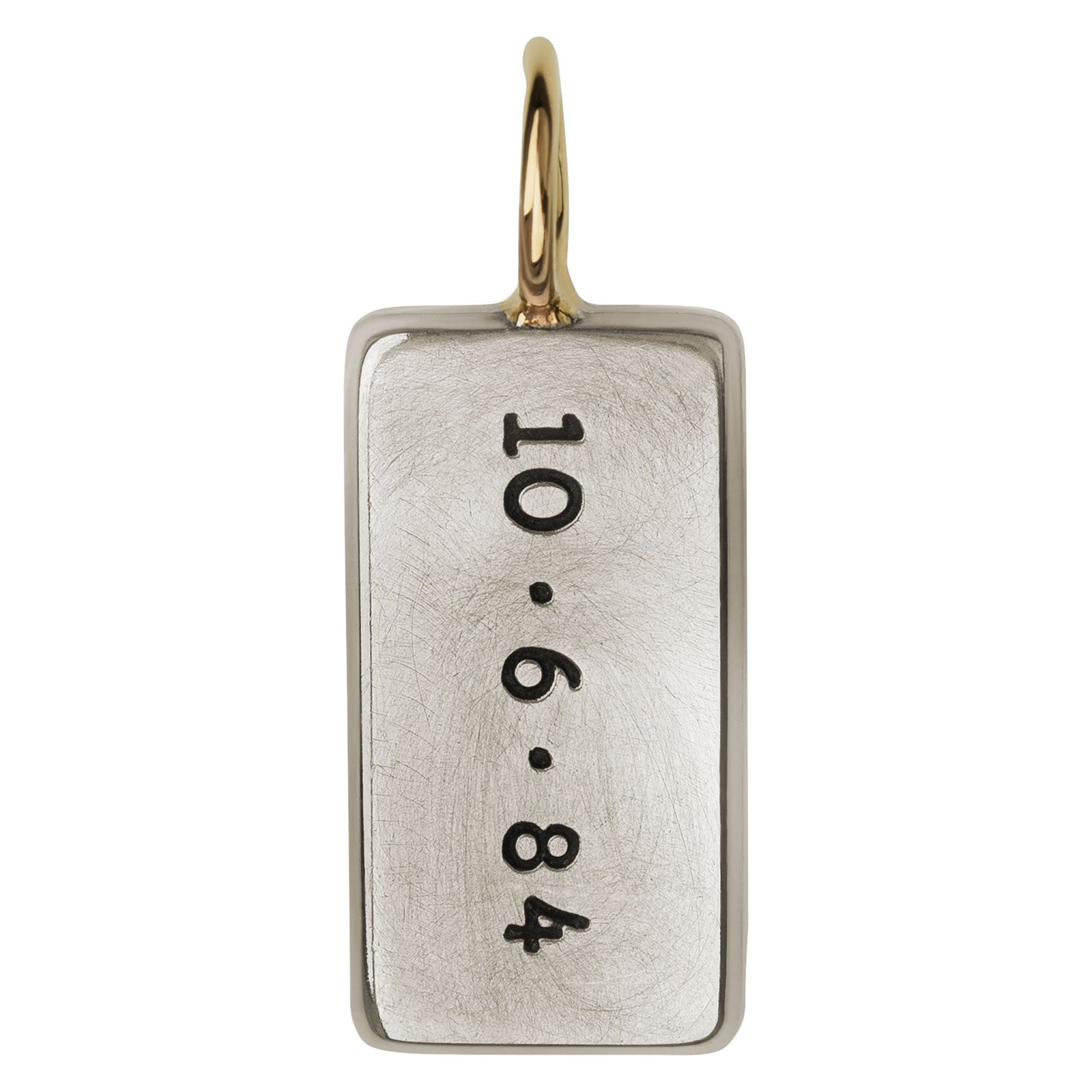 Highlight the unique bond between mothers and their children with this stunning, personalized mini ID tag. Crafted in sterling silver and 14k gold and delicately hand-stamped with a name and date of your choosing, this heartfelt charm is truly one-of-a-kind. Make a lasting impression she won't forget.