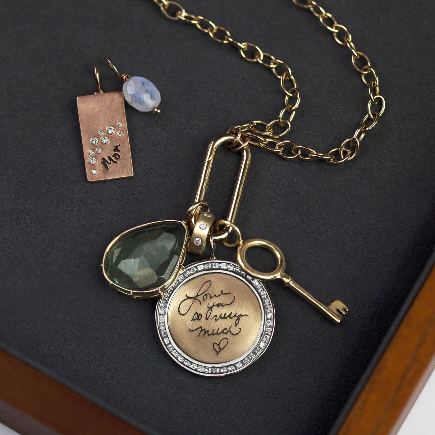 All Heather B. Moore pieces are handmade to order. Because of this, you are able to customize any piece to your specifications. We currently offer 5 metal types, including; silver, yellow, white, rose, and green gold. If you’d like to change a product on the website, please submit a custom request.