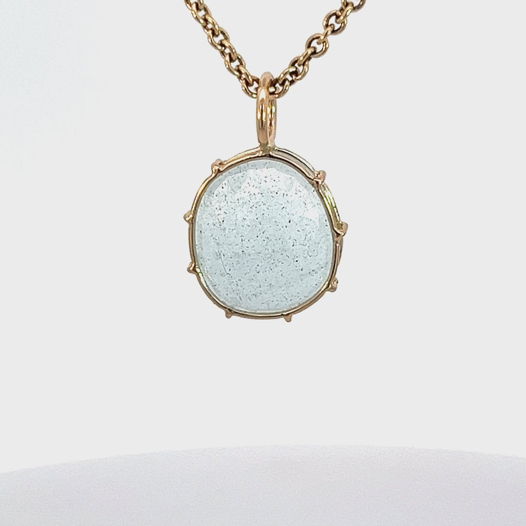 Small aquamarine Harriet Stone wrapped in yellow gold wire. The stone shown is the stone you will receive. Each Harriet Stone is unique, and once this stone is sold there may not be another like it.