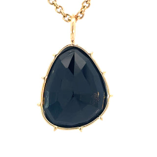 Small black spinel Harriet Stone wrapped in yellow gold wire. The stone shown is the stone you will receive. Each Harriet Stone is unique, and once this stone is sold there may not be another like it.