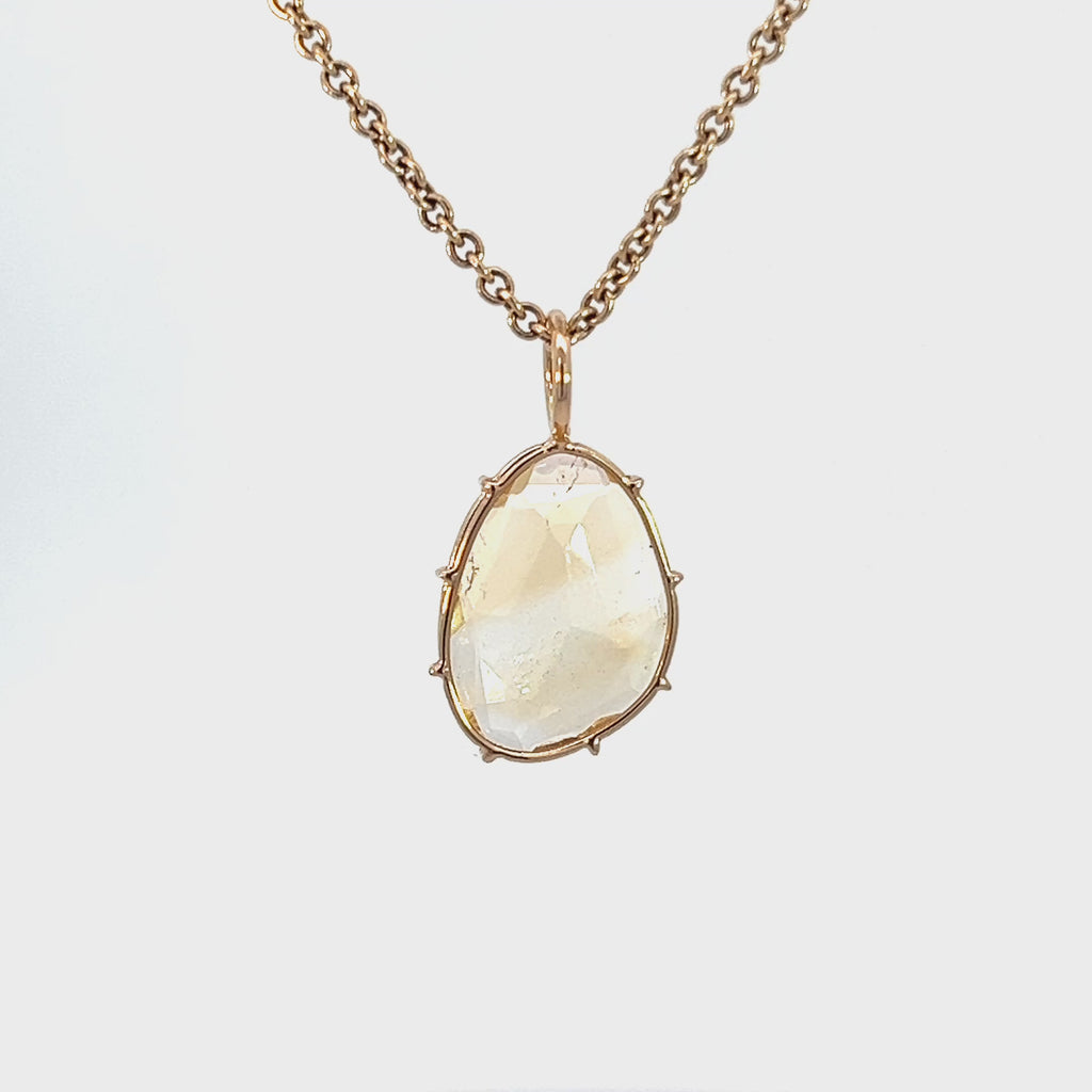 Small citrine Harriet Stone wrapped in yellow gold wire. The stone shown is the stone you will receive. Each Harriet Stone is unique, and once this stone is sold there may not be another like it.