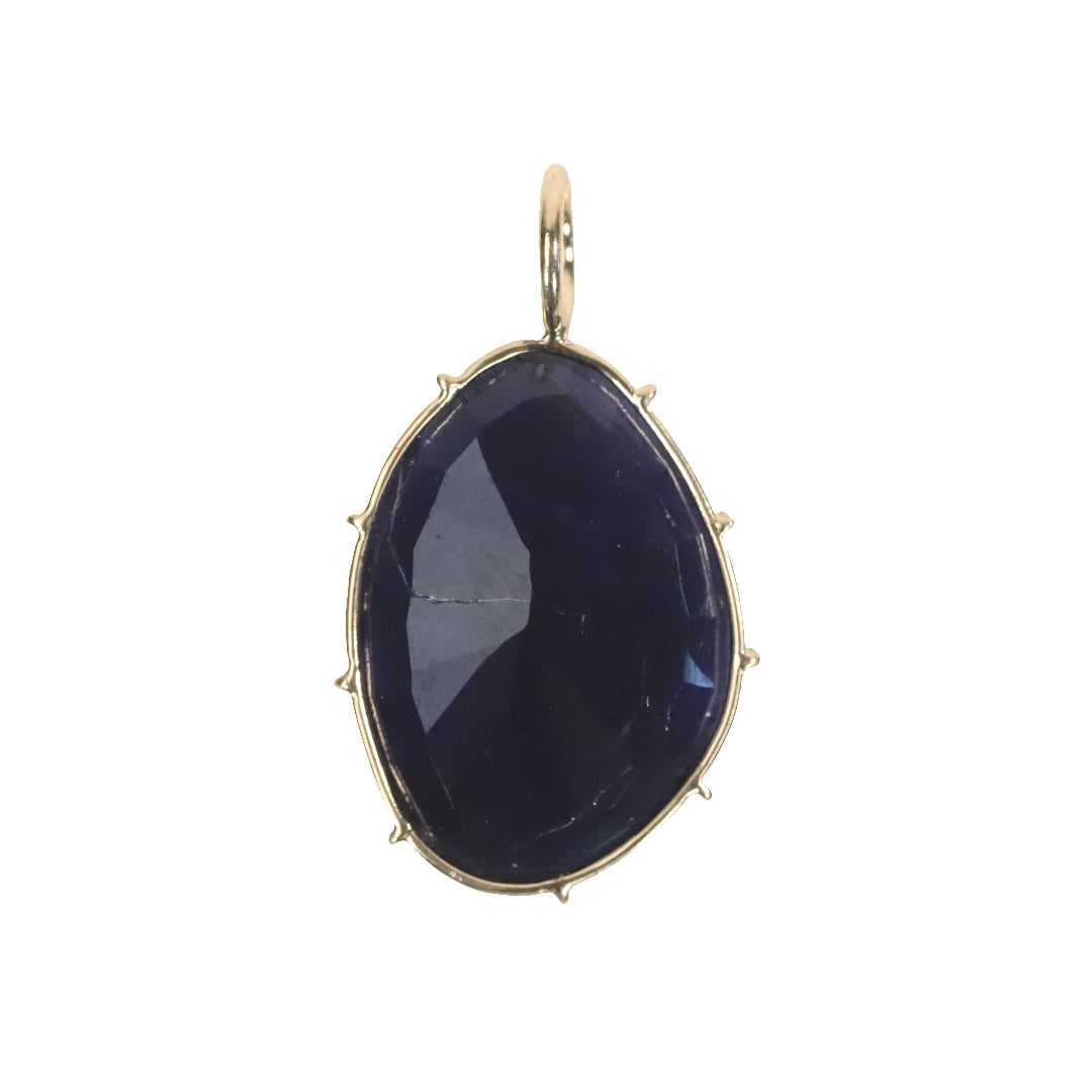 Small iolite Harriet Stone wrapped in yellow gold wire. The stone shown is the stone you will receive. Each Harriet Stone is unique, and once this stone is sold there may not be another like it.