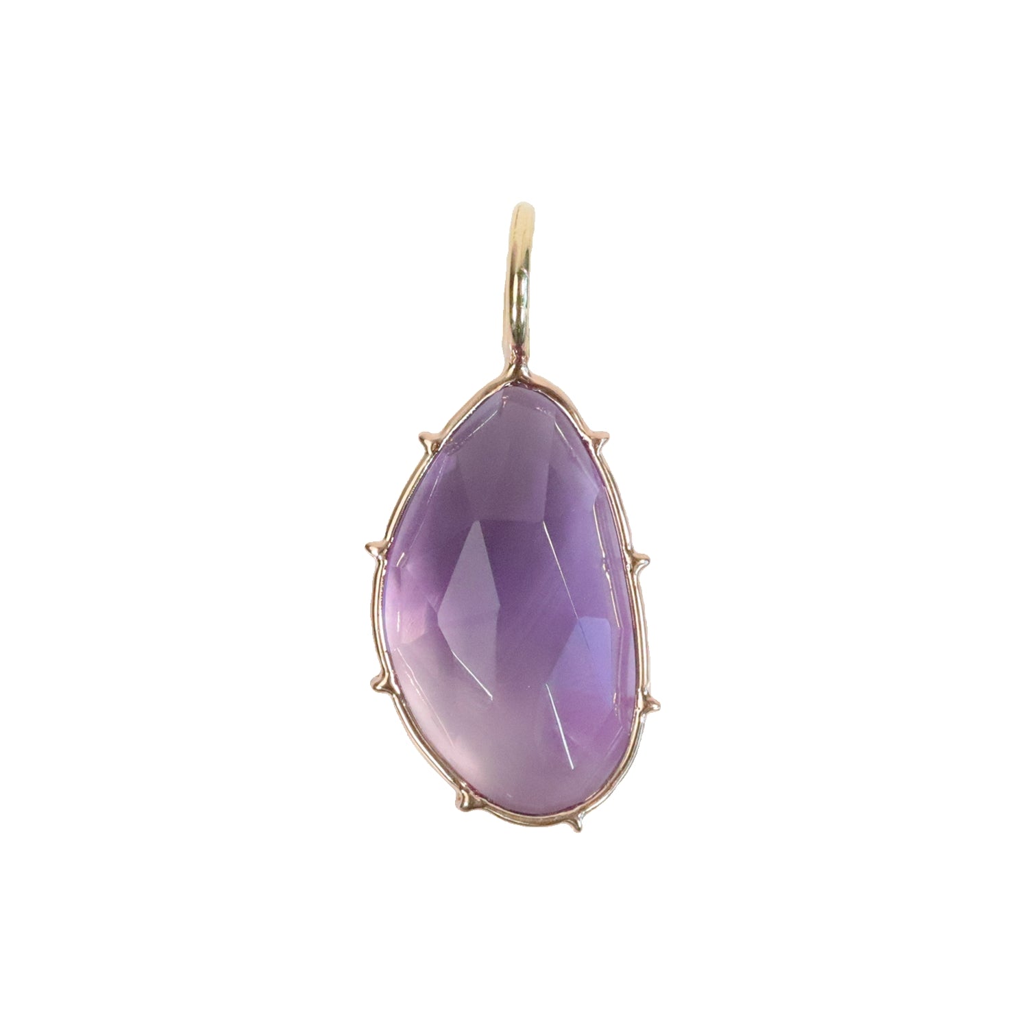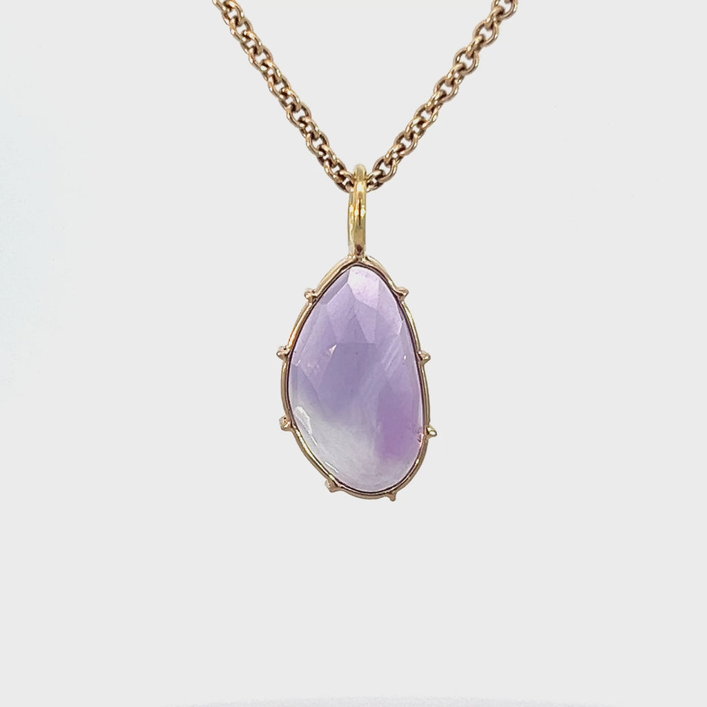 Small purple amethyst Harriet Stone wrapped in yellow gold wire. The stone shown is the stone you will receive. Each Harriet Stone is unique, and once this stone is sold there may not be another like it.