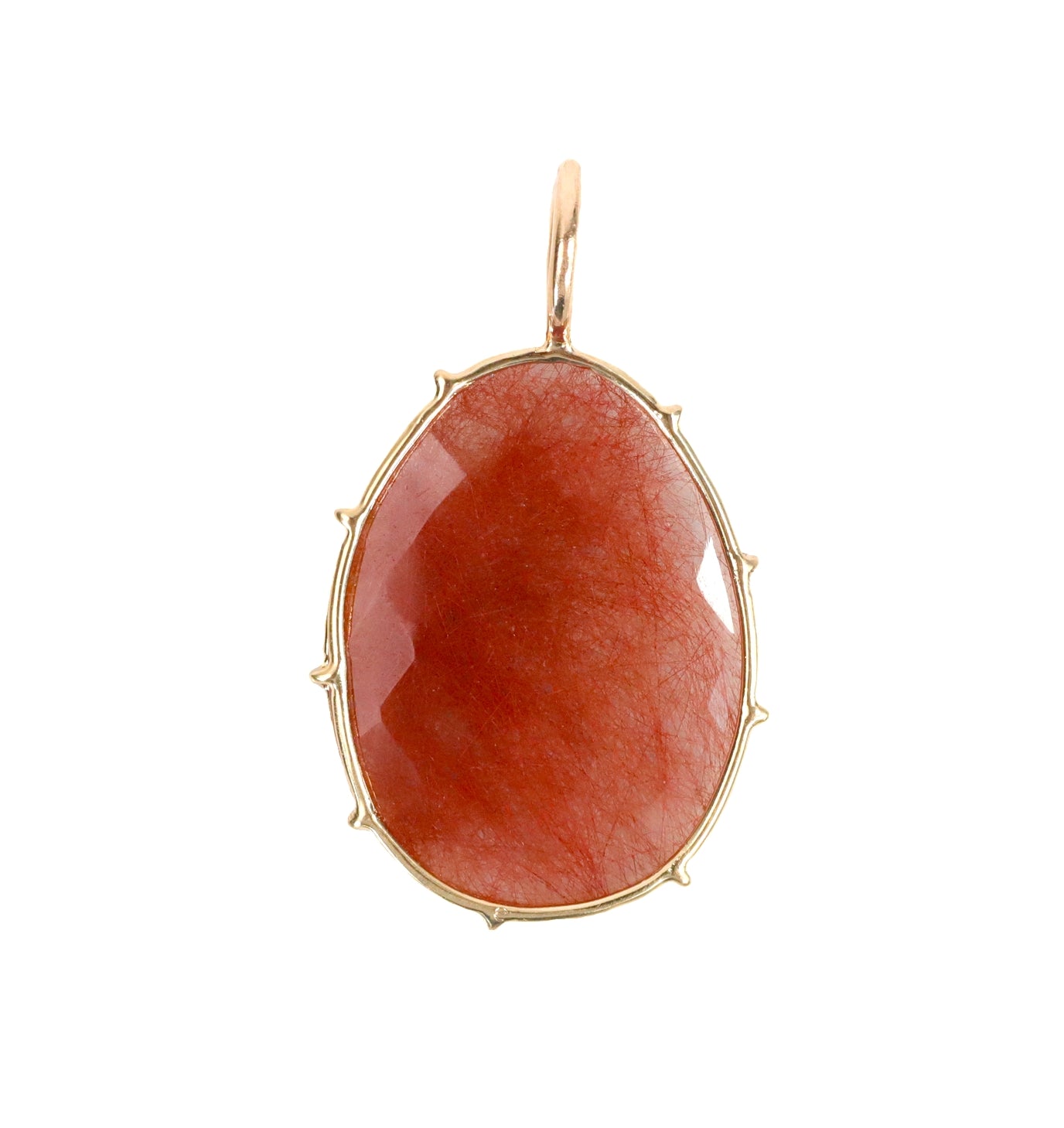 Small red rutilated quartz Harriet Stone wrapped in yellow gold wire. The stone shown is the stone you will receive. Each Harriet Stone is unique, and once this stone is sold there may not be another like it.