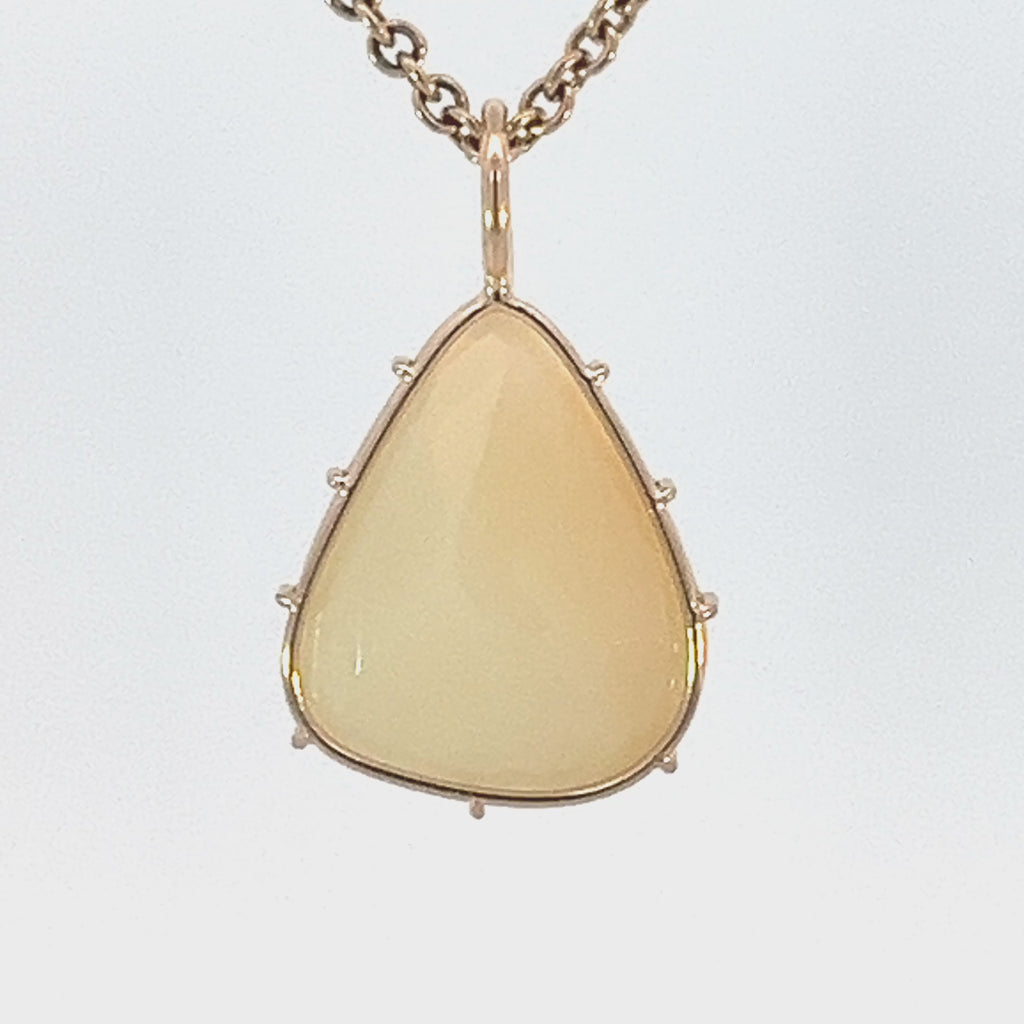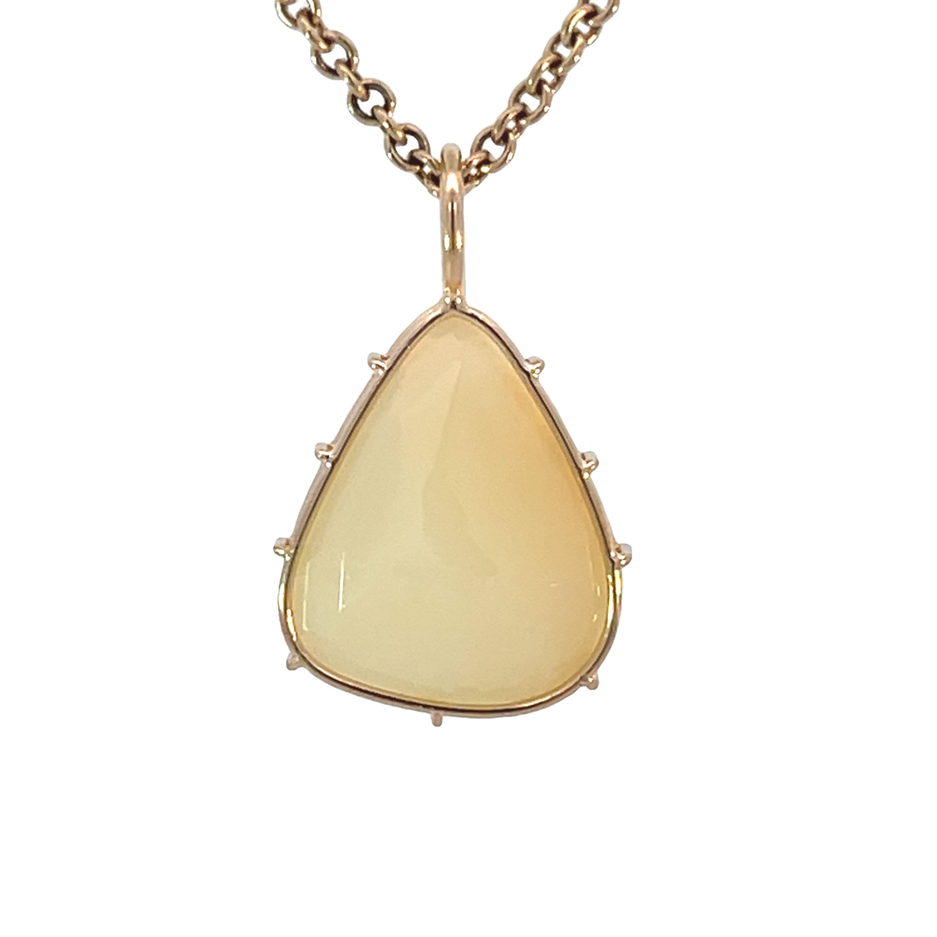 A white opal Harriet Stone wrapped in yellow gold wire. The stone shown is the stone you will receive. Each Harriet Stone is unique, and once this stone is sold there may not be another like it.